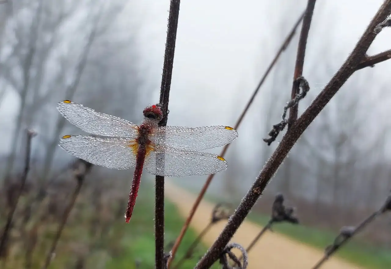 Esta mañana muy fría y entre la niebla.