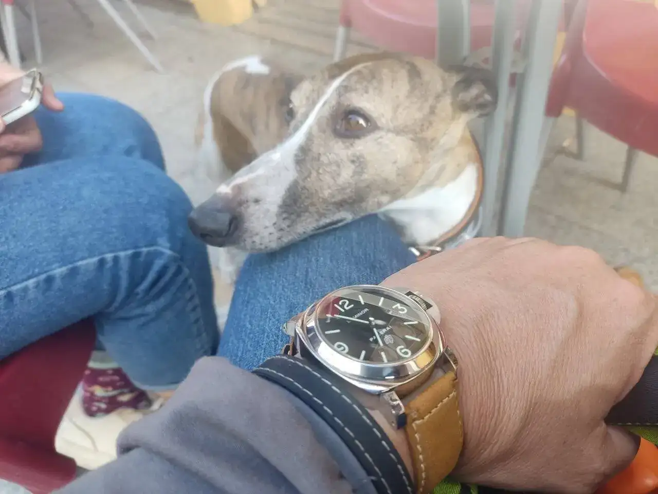 Sí que corre, pero no tanto como sus primos de zumosol, este es un Whippet, un galgo de mediana estatura, entre el greyhound o el galgo español y el lebrel pícolo italianoPues un chico precioso.
