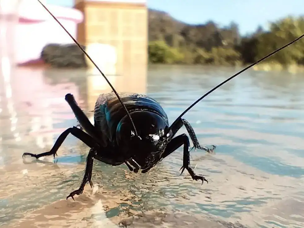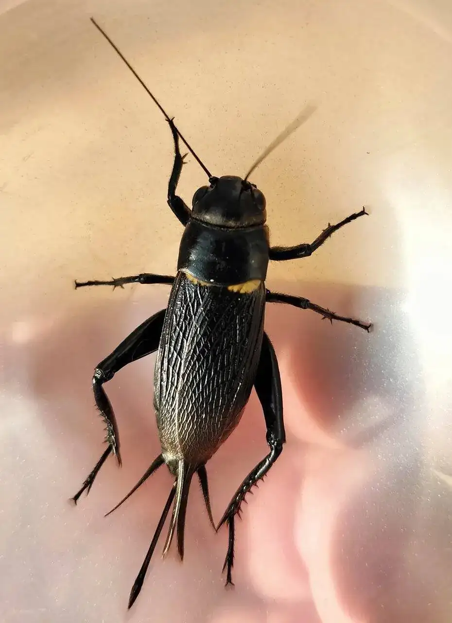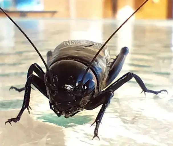 Un grillo de dos manchas, Gryllus bimaculatus. En este caso una hembra.