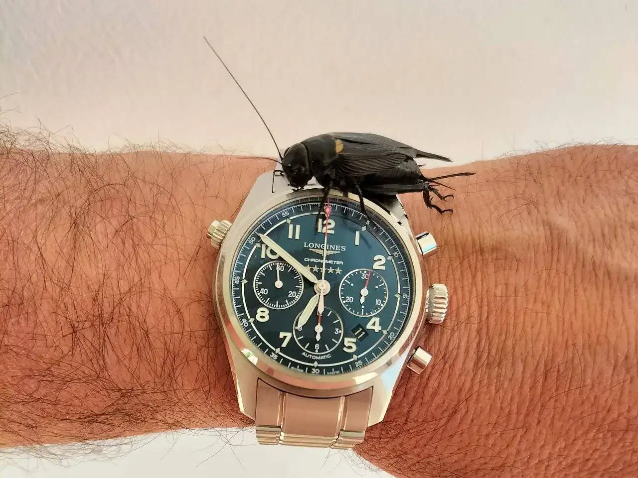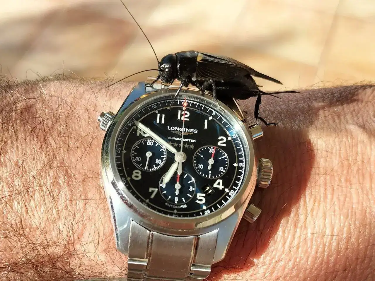 Qué bonitas fotos del grillo, y del reloj... qué decir del reloj, me encanta ese Longines.Nueva especie para la lista, Jesús.
