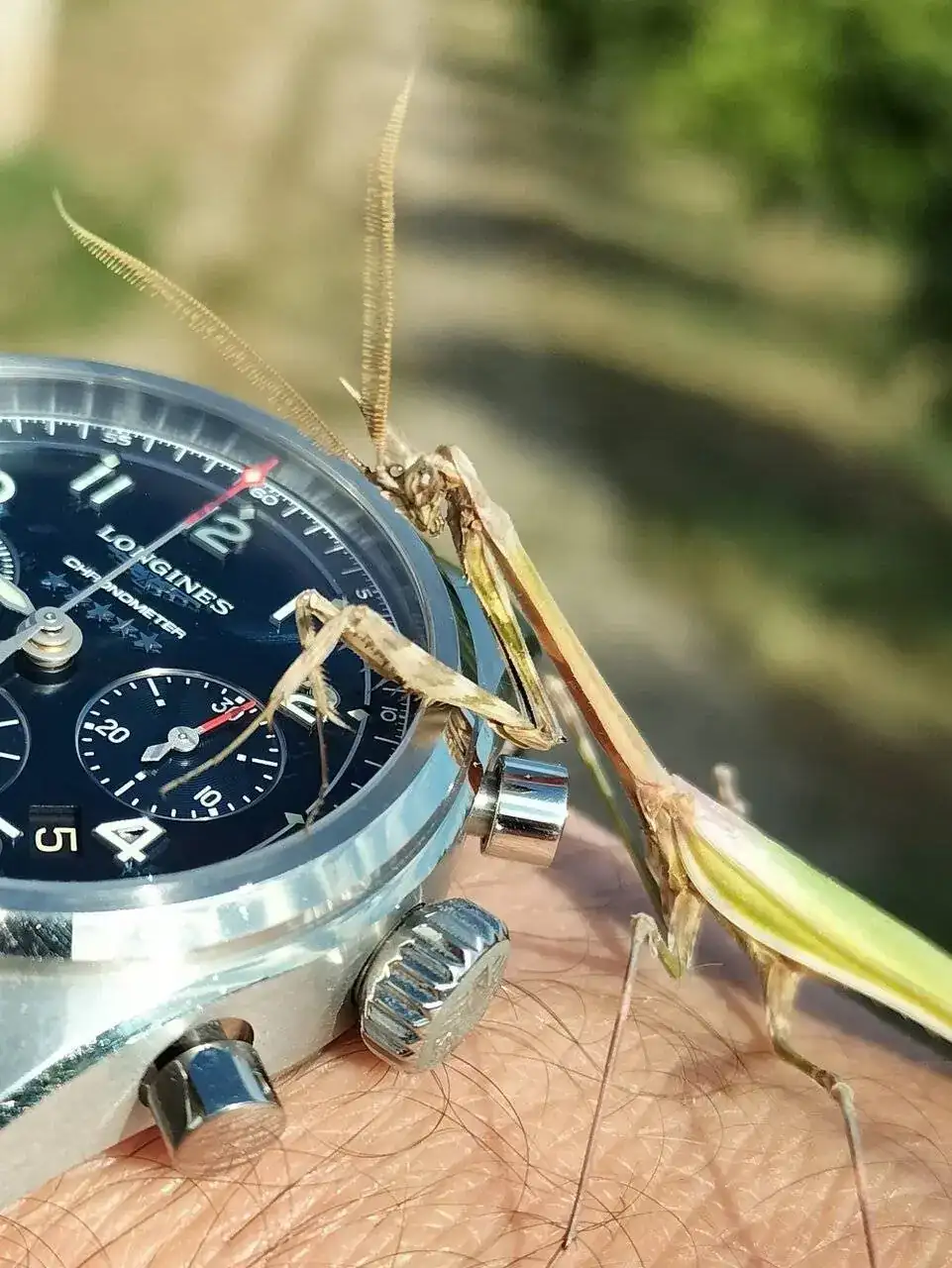 Mantis (Empusa pennata). En este caso macho, son un poco más raros, se nota por la plumosidad de las antenas.