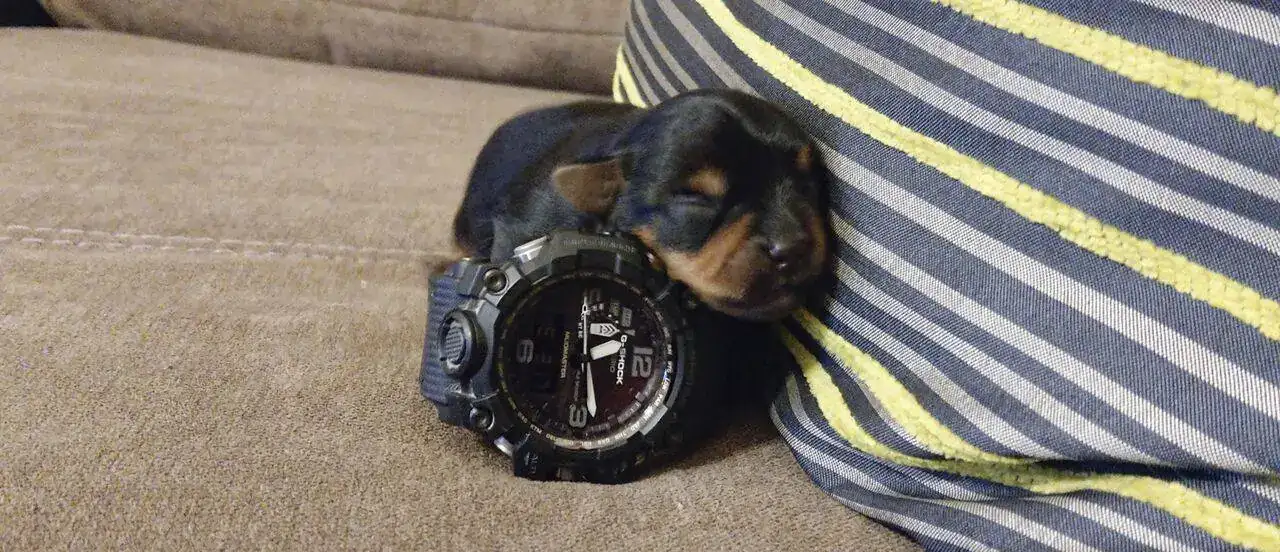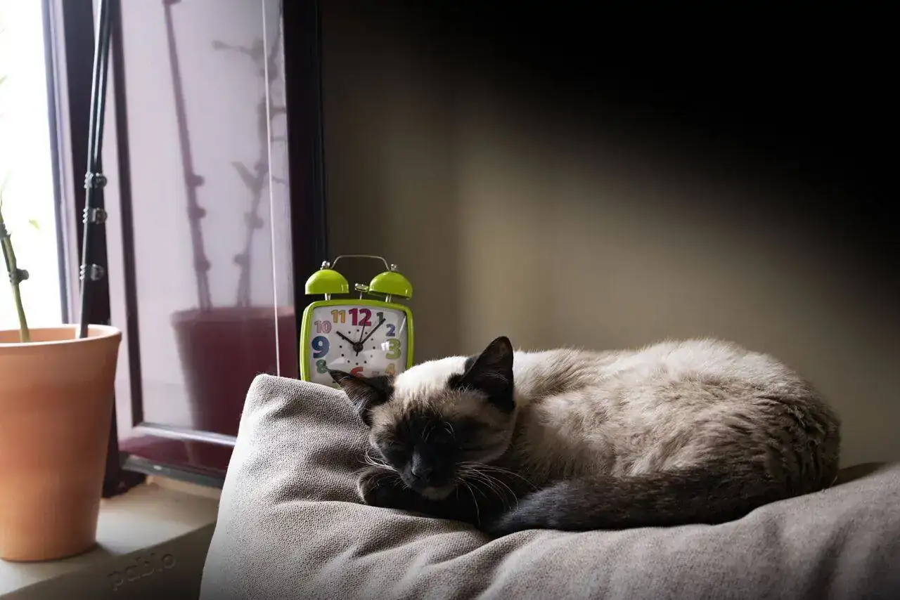 Espero que el despertador no esté programado...del bote que pega el felino😂😂. Que cosa más bonita ese cachorrillo♥️♥️♥️