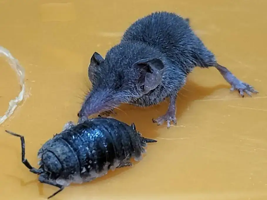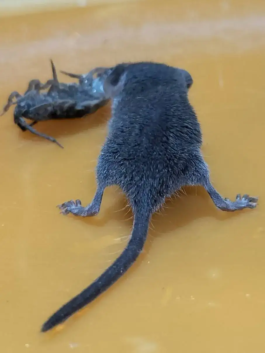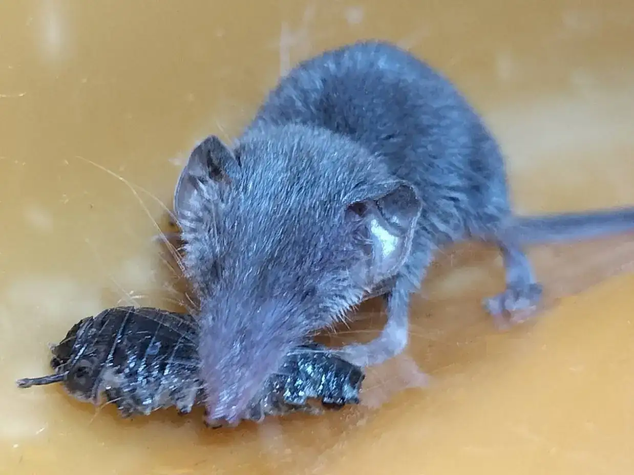 Sigo sin explicarme cómo es posible que los traiga casi todos ilesos, y más en este caso. Un mamífero agresivo y con mucho nervio defendiéndose, que no llegará a los tres gramos de peso.