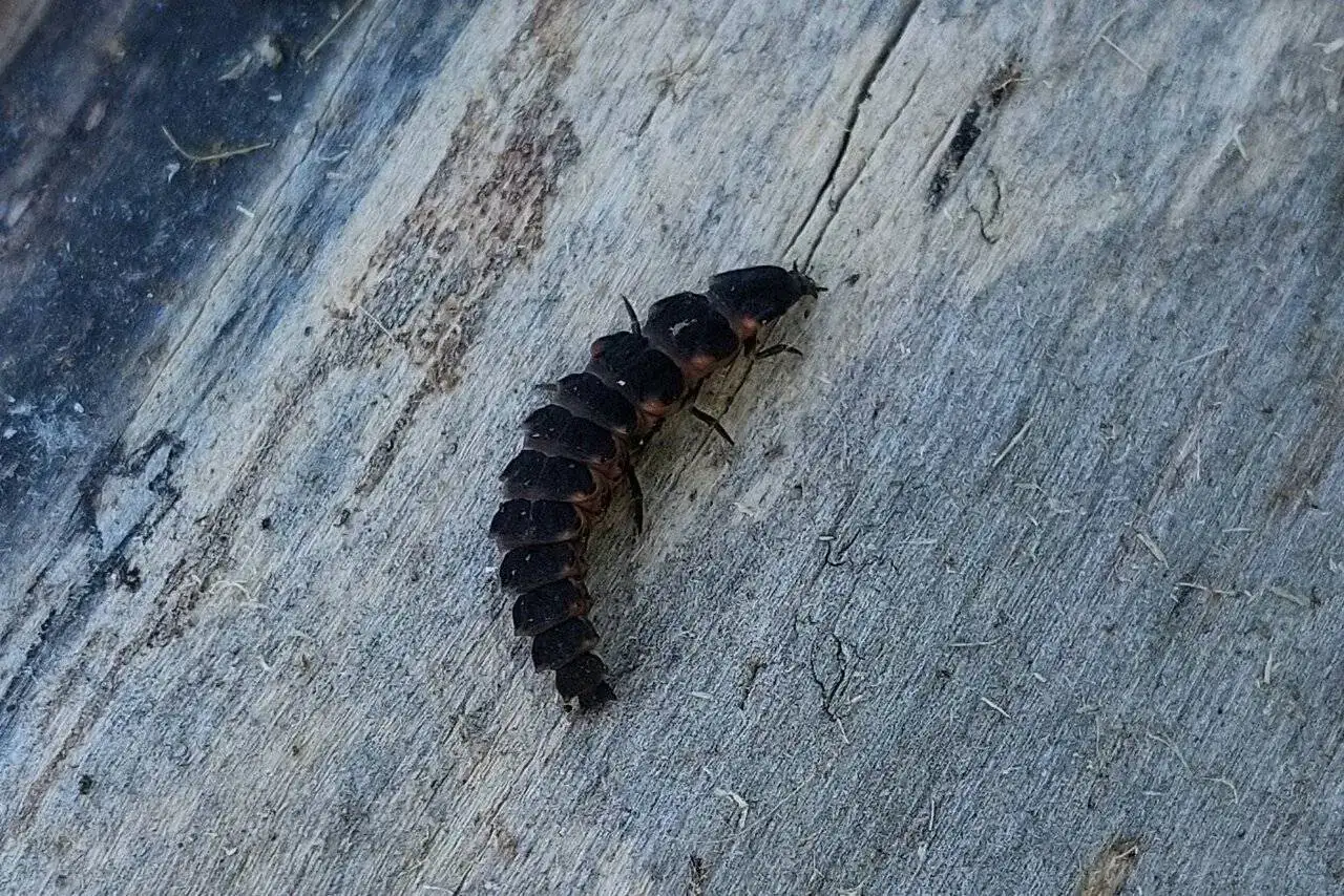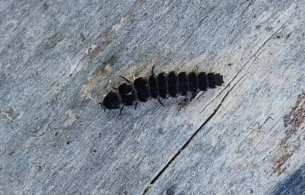 Las hembras adultas se distinguen de las larvas por tener ojos compuestos, y las larvas solo un par de ocelos. Pero con la foto no soy capaz de distinguir.