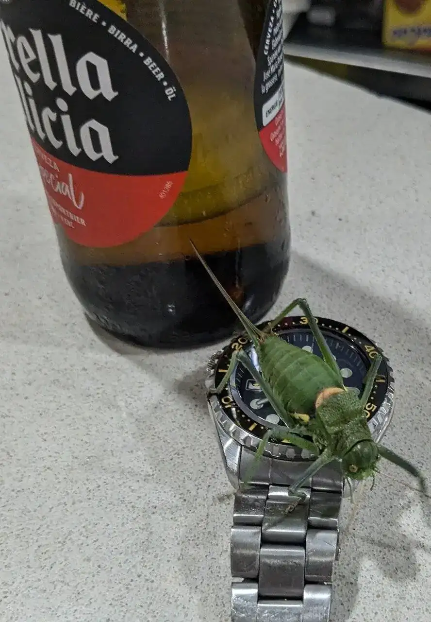 En la penúltima foto hay un escarabajo Oedemérido de femur ancho y por lo tanto macho, de una especie diferente a la que ya aportaste, pero no hay reloj en la foto 🤔. Oedemera femorata.