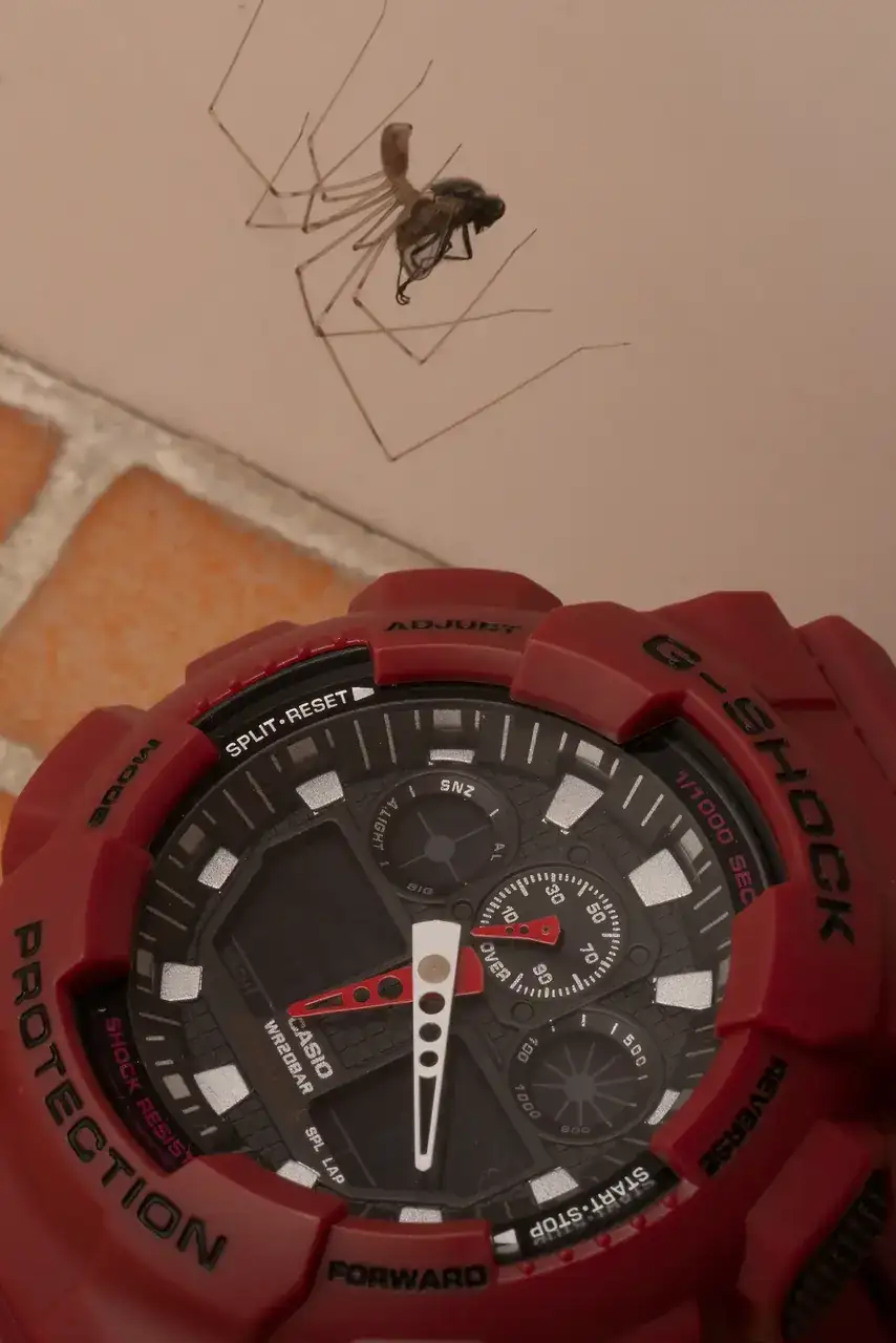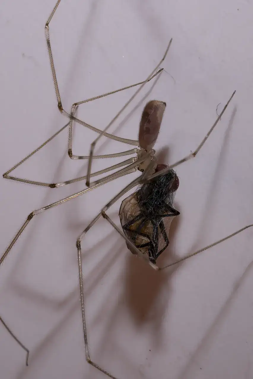 Ésta es una auténtica araña con cefalotórax o prosoma separado del abdomen u opistosoma. En los opiliones no hay separación.