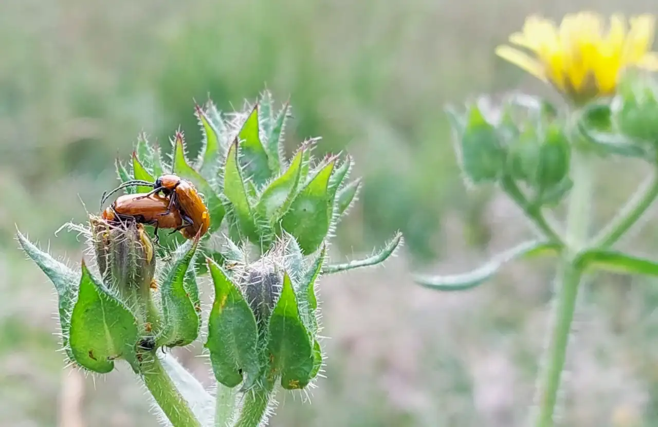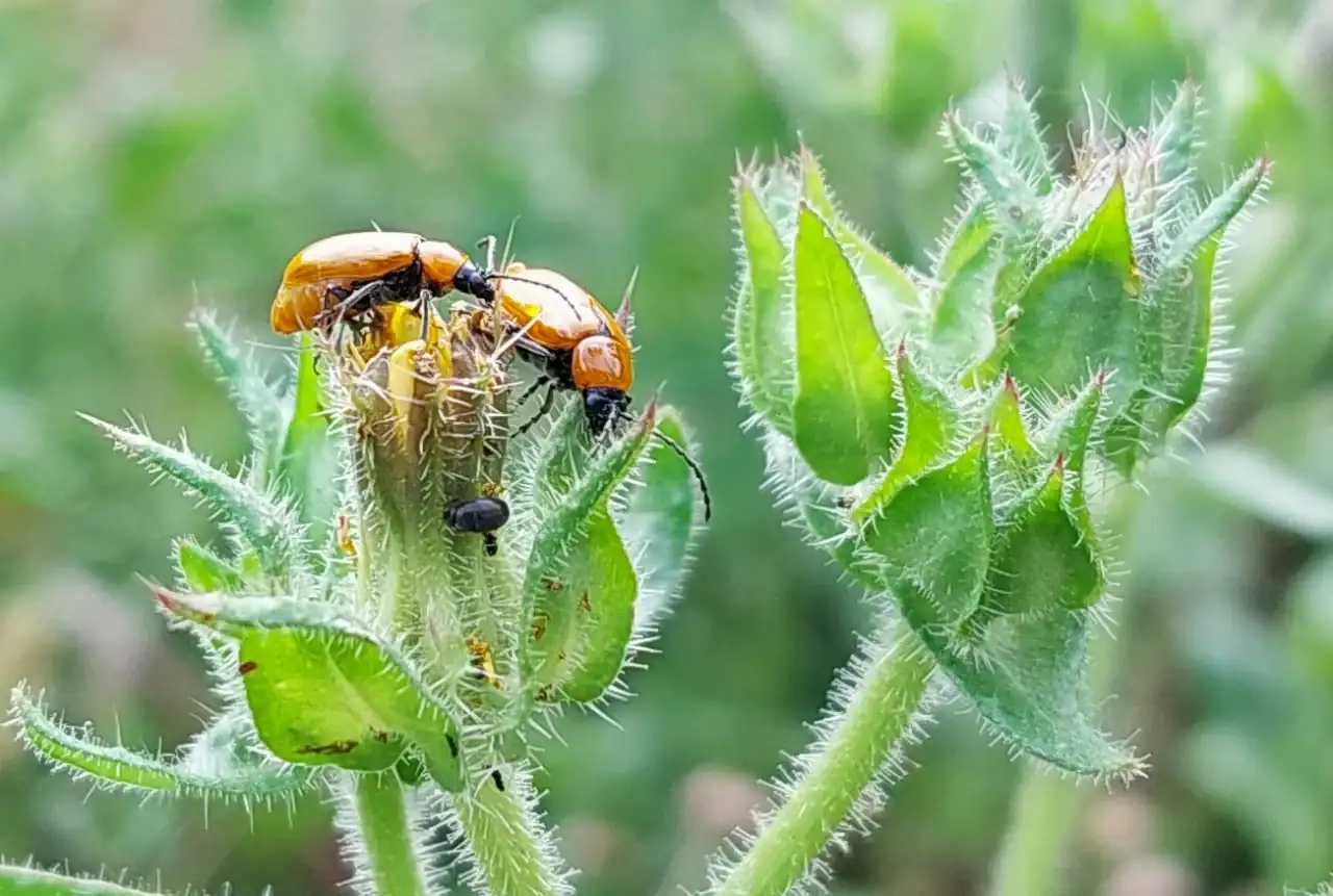 Vaya orgía de escarabajos galeruca de los narcisos (Exosoma lusitanicum).