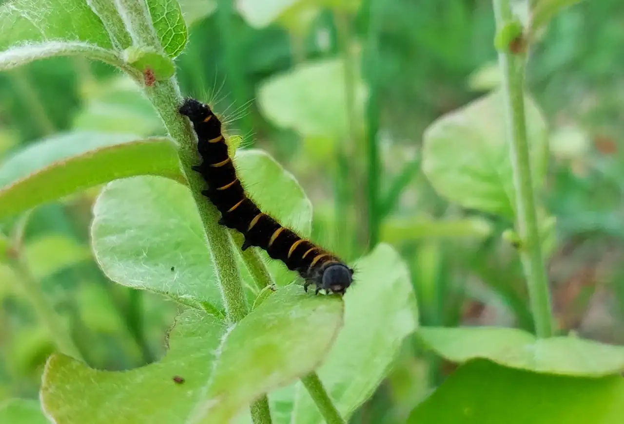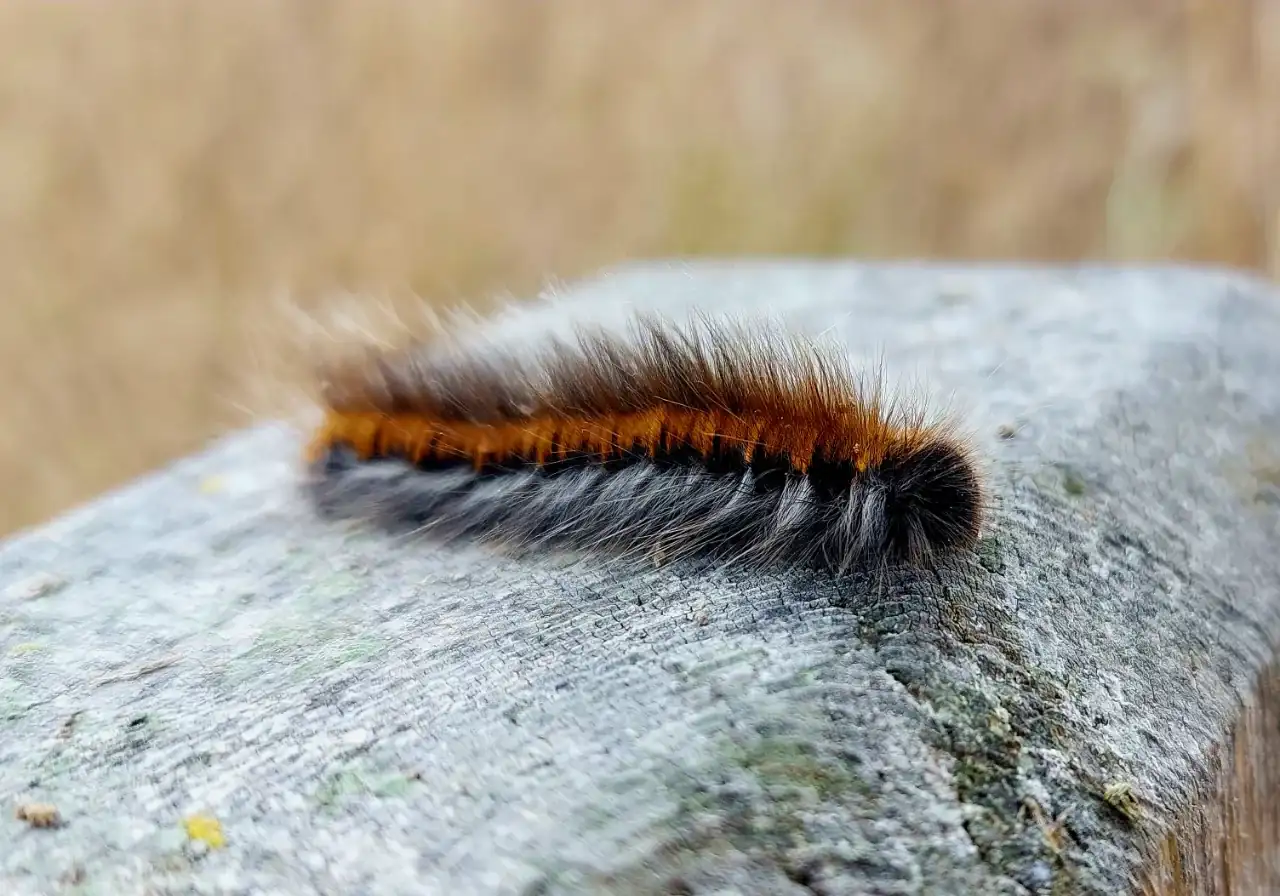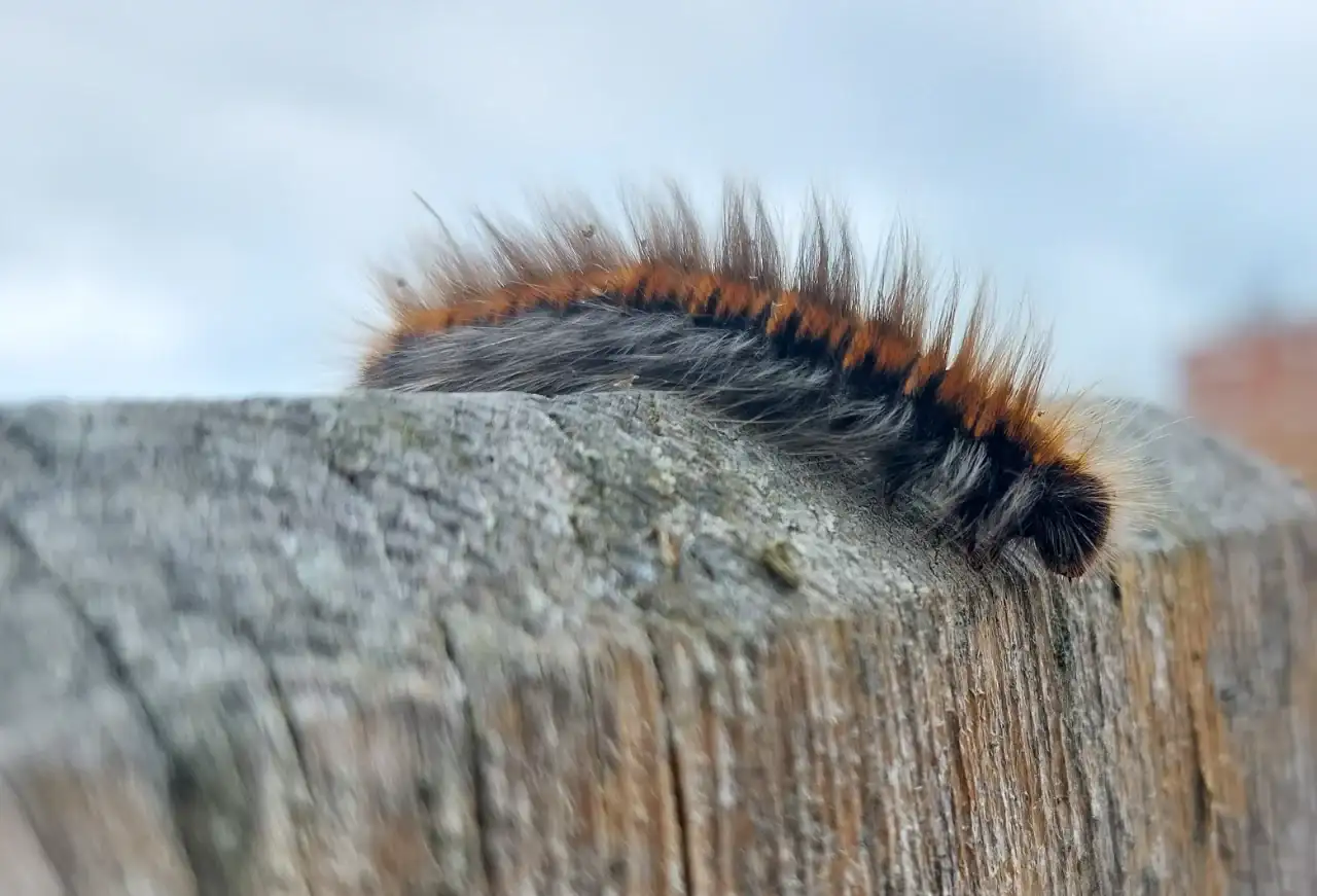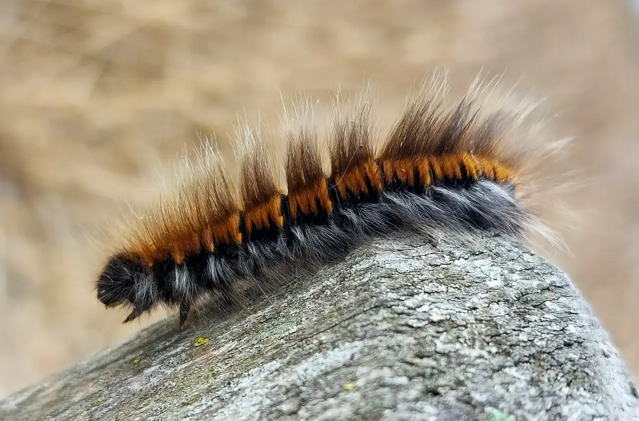 Conocida comunmente como polilla zorro, esta oruga de hasta 7 cm. y totalmente inofensiva, presenta un aspecto peludo y leonado, lo que hace pensar erroneamente en los pelos urticantes de la procesionaria del pino