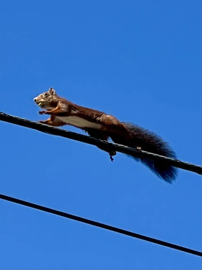 La cola es muy importante en esta labor.Hay que joeerse, la ardilla funambulista sin red, jamás hubiese pensado que serían capaces de hacer eso![]()