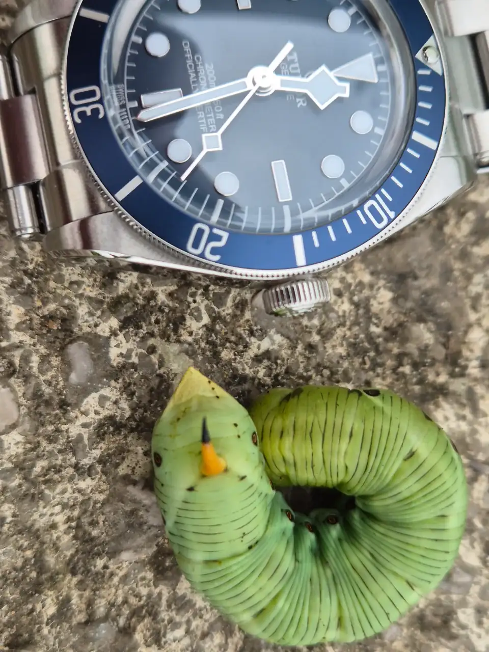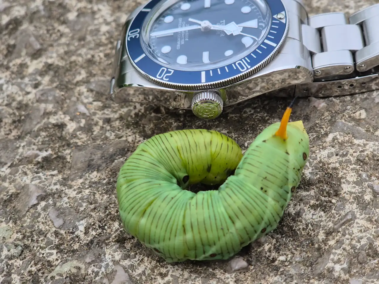 Edito: Agrius Convolvuli. Cuando la tocas, salta como un resorte y se protege, girando sobre si misma y adoptando la forma que se ve en la foto.