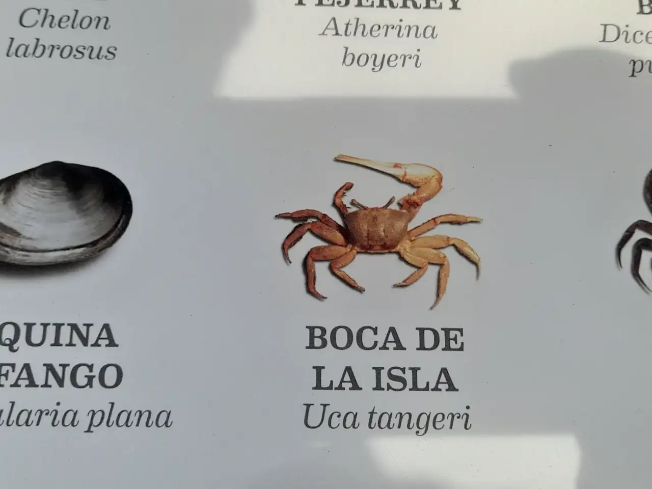 Qué interesante crustáceo. Al parecer es la única especie de cangrejo violinista de Europa.Boca de la isla, así parece que se llama este cangrejo y creo que no está en la lista, también aparecen unos flamencos.