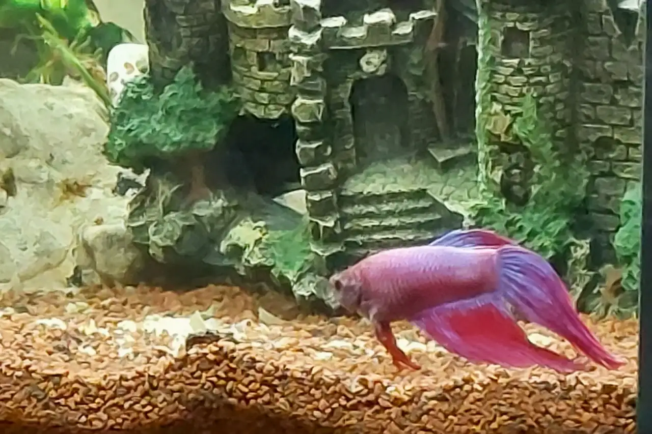 Perdón por la calidad de las fotos pero están tomadas desde la barra de un bar, el acuario está en el botellero del fondo detrás de la barra.