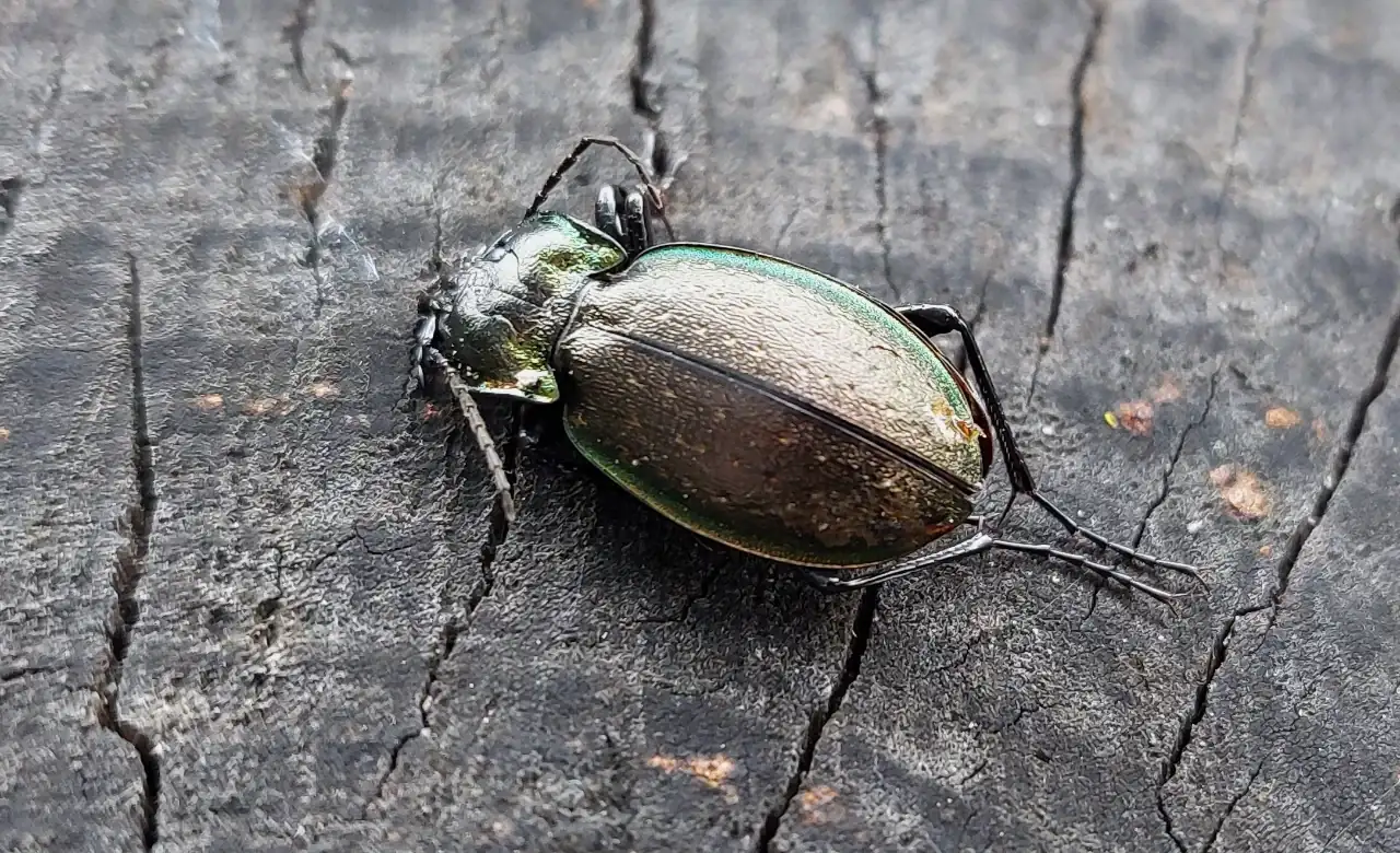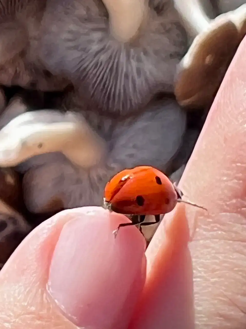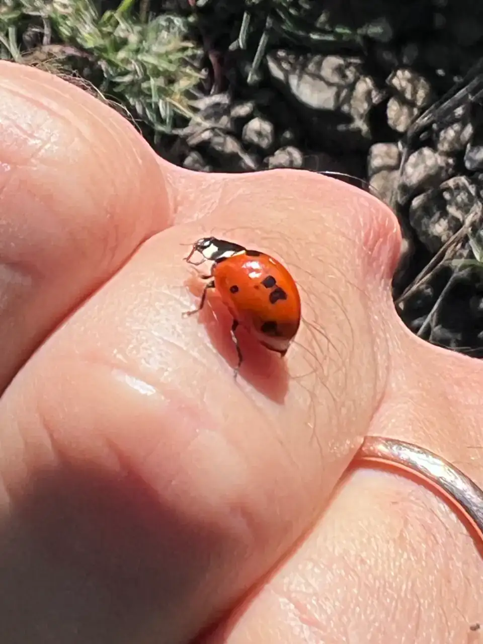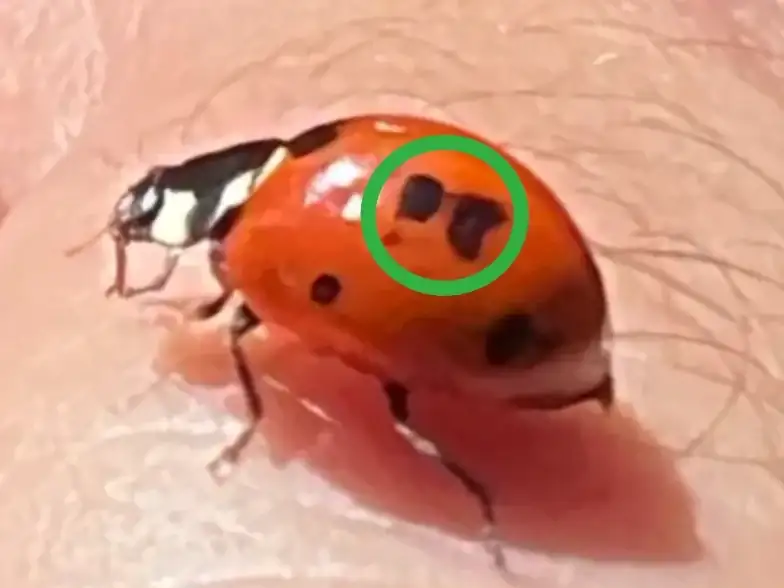 Bonita mariquita de siete puntos con una curiosa mancha doble en el élitro izquierdo.