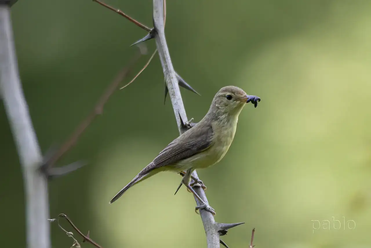 Tampoco lo tengo claro, apostaría por un mosquitero común (Phylloscopus collybita).A mí me parece un verdecillo (Serinus serinus).