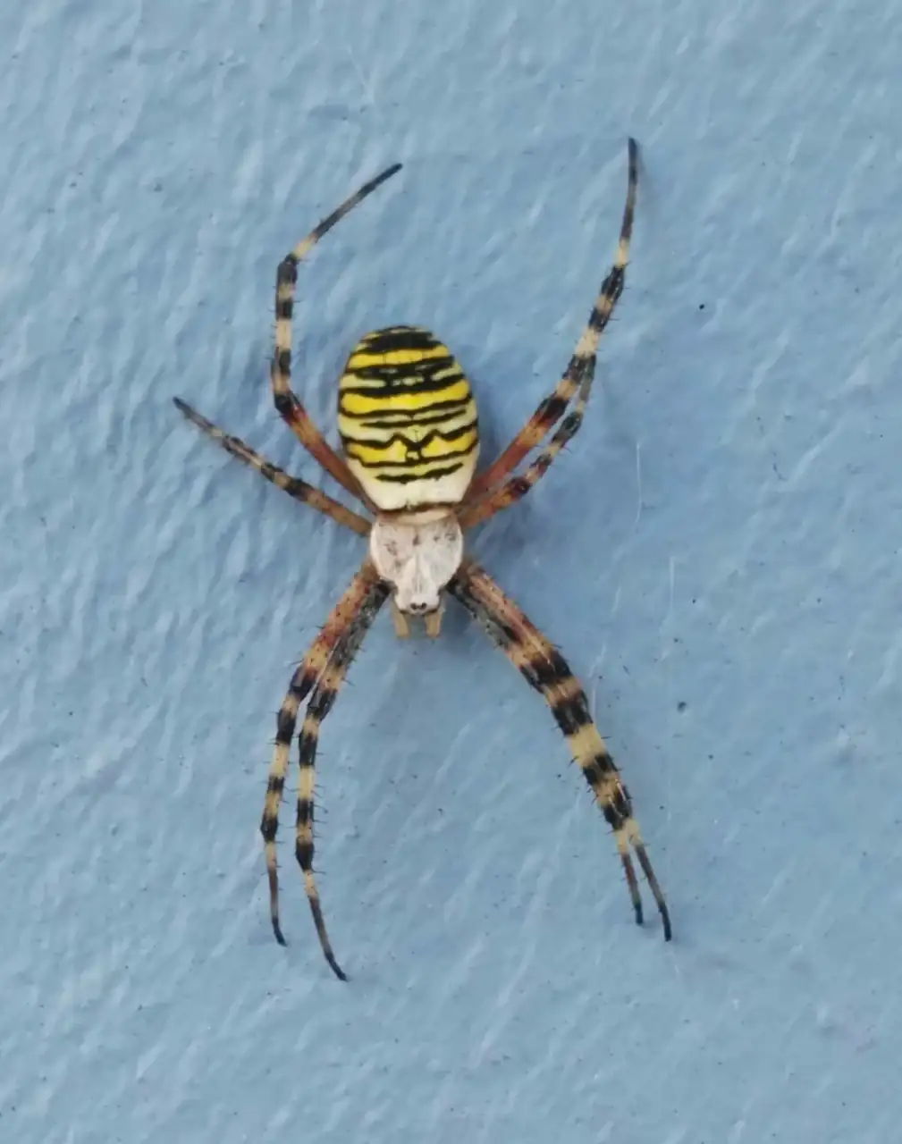 Gracias de nuevo!. Esas fotos ya tienen cinco años, y la araña (también llamada araña avispa, por lo que pude leer) estaba en la pared de la casa de una amiga. Te dejo una foto más, por suerte era muy fotogénica..Creo recordar que aquí fue la primera aparición de esta araña en el hilo.