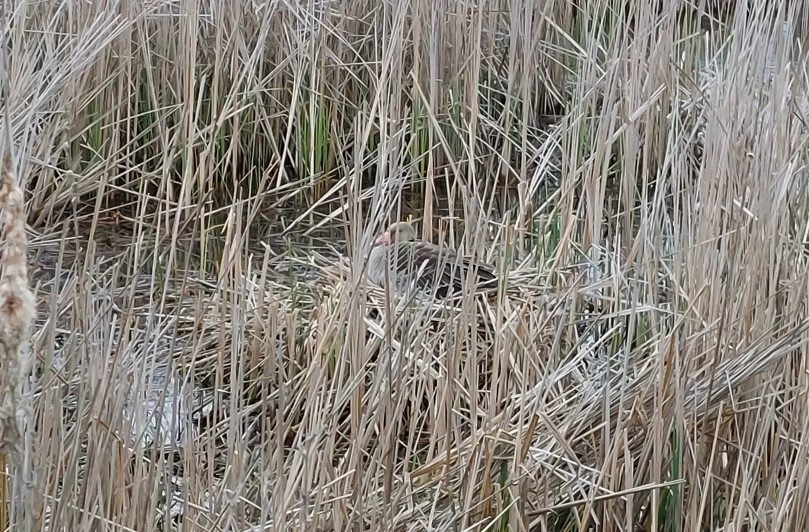 Algo muy difícil de observar al menos por estas latitudes y que yo al menos no había visto nunca, un nido de gansos con uno de ellos empollando.