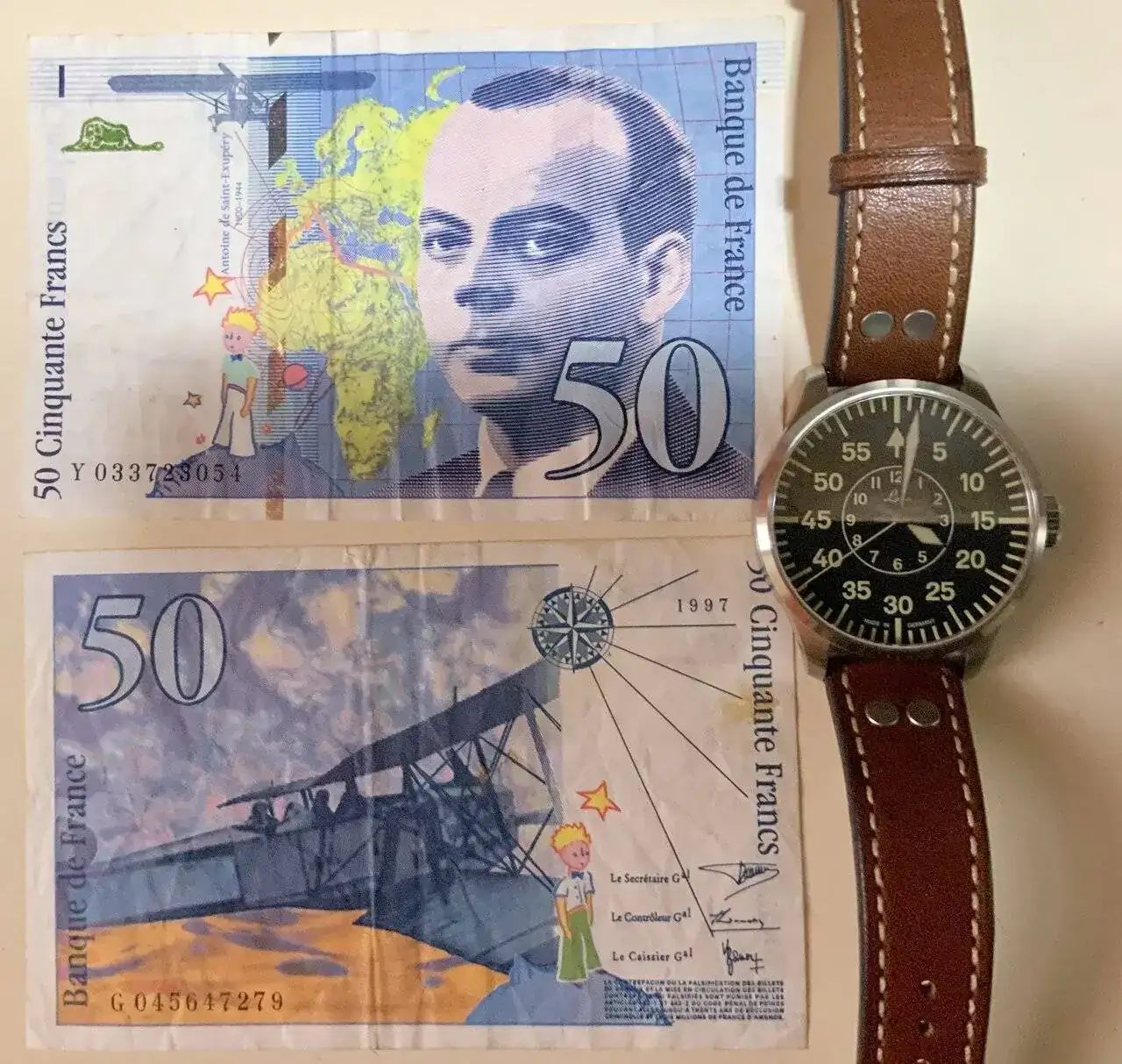 Reloj Retro Sport Gerald Genta y billete de 10 bolivianos, con número de serie capicúa (se lee lo mismo al revés),