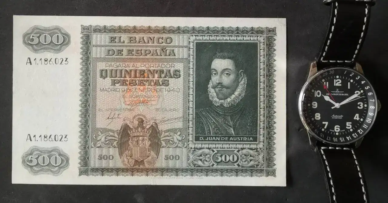 Ahora un gran billete, precioso, junto a un gran reloj también. 500 pesetas de 1927.