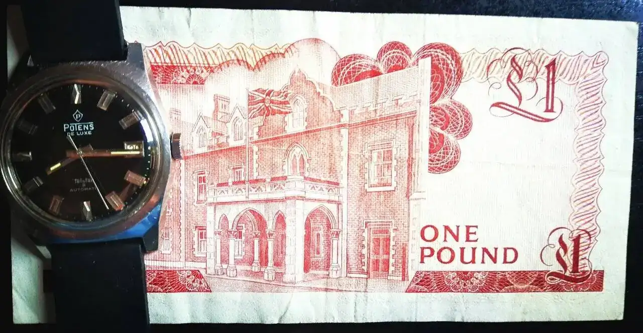 10 francos franceses de 1972, con reloj Potens automático.