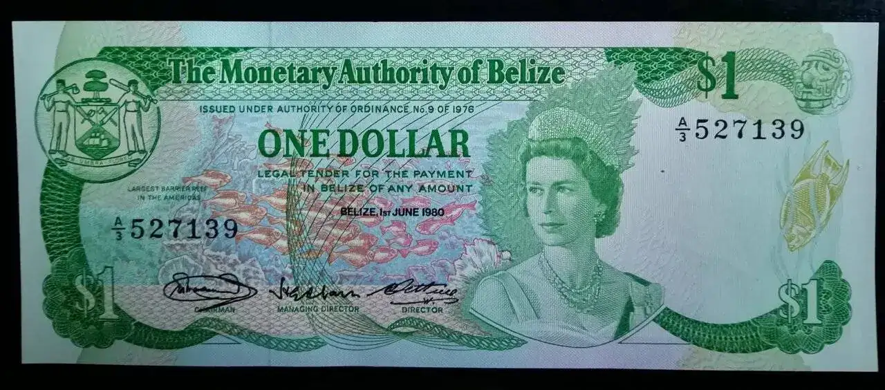 La de gente que piensa que Belice es un país africano.Un dólar de Belize, 1980.