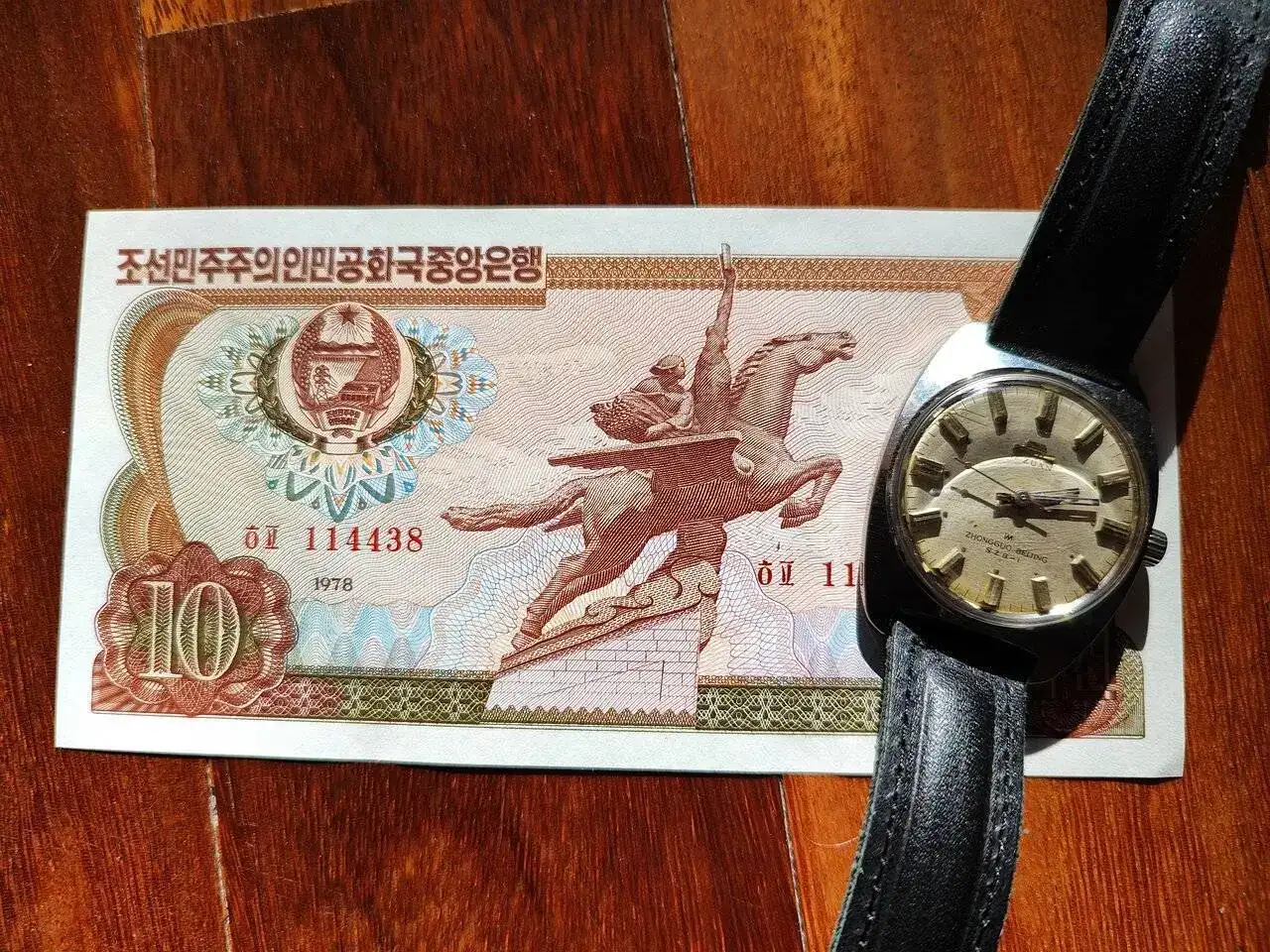 Sigo con otro billete, un compi ya ha mostrado algunos de Corea del Norte, muestro yo también uno de los míos, 10 won norcoreanos de 1978, junto a un Beijing Chino