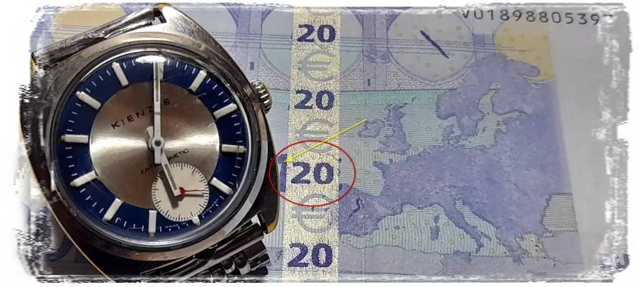 Después de este "pegote", las fotos. La última imagen muestra la banda normal. Acompaña un reloj Kienzle de la BDR.