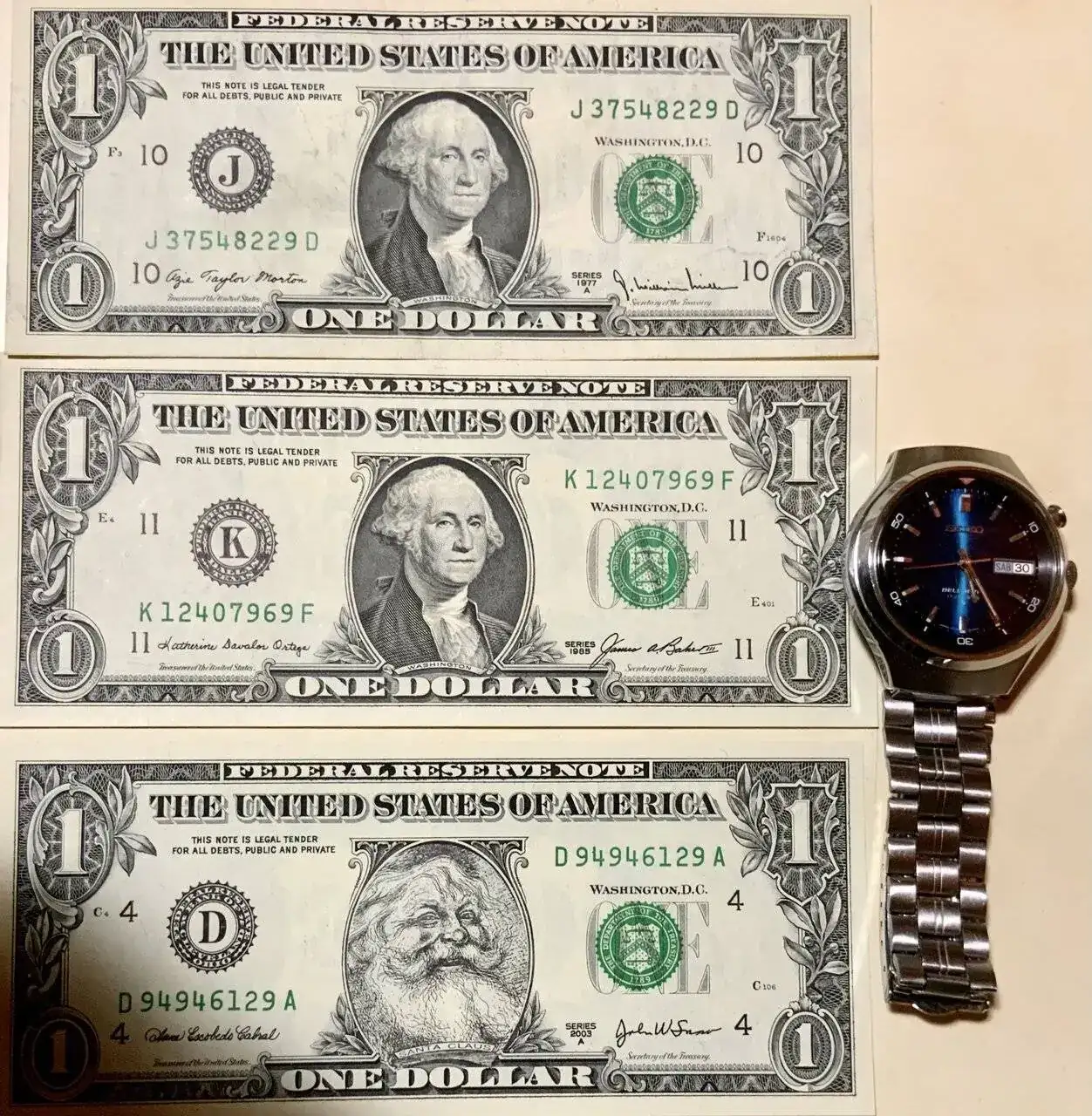 (… perdón por la autocita, pero es por dar continuidad).Estupendo hilo y nivelazo en las aportaciones. En mi caso voy a colaborar con un par de combos reloj-billete/moneda muy significativos para mi de cuando viví en ambos lados del estrecho de la Florida.