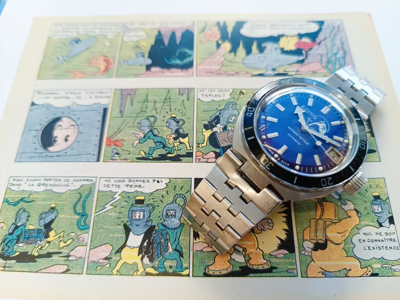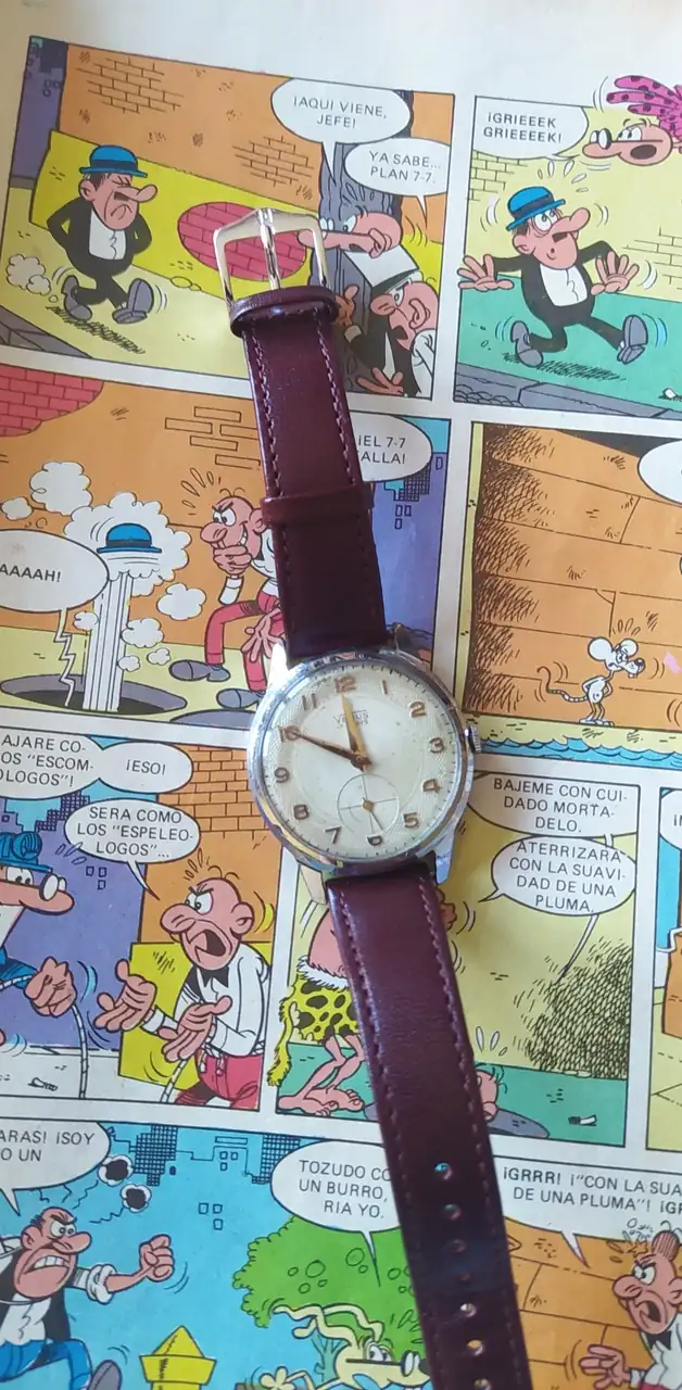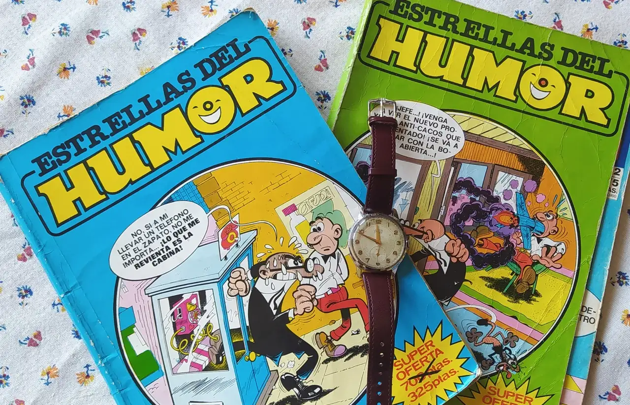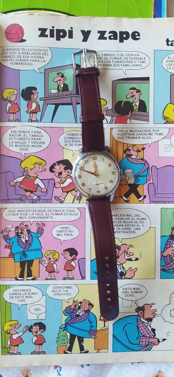 Yo creo que llevaria uno de estos entiendo yo ya que es mas del periodo (1950) aunque el Speedmaster es de 1957 cuando salió el primero (este casualmente es el último).Xabi, esos cómics parecen muy antiguos, pero no los ubico ahora mismo, cuáles son??