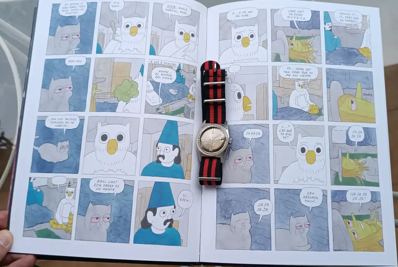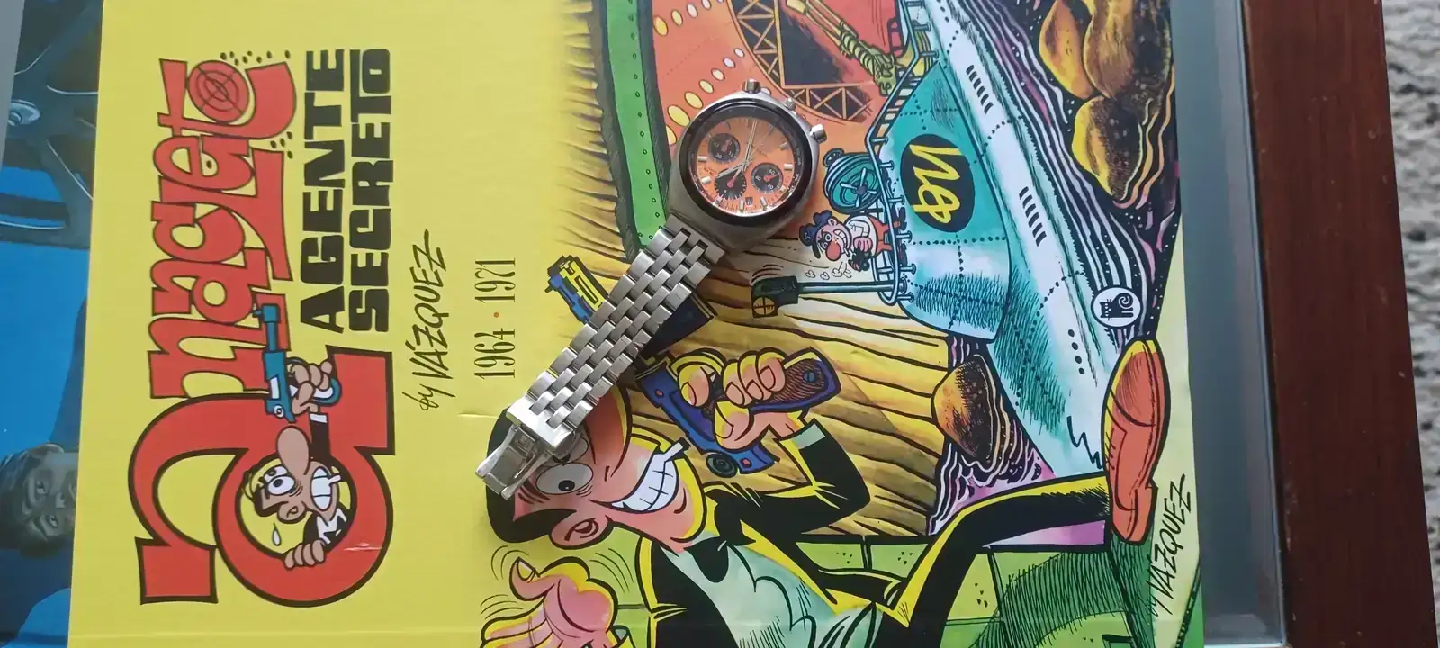 TRE-MEN-DO VÁZQUEZ!!!!!. Ese si que fue un personajebullhed citizen de cuarzo sobre fondo del primer integral de SD del anacleto del gran Vázquez. tebeazo.