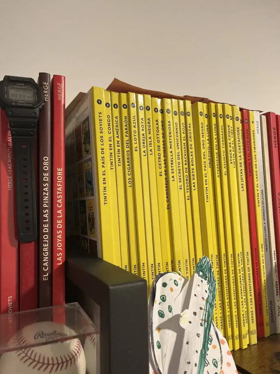 Y, por supuesto, los álbumes de Tintín, el más grande (aunque son álbumes modernos, sin el lomo de tela 😉).