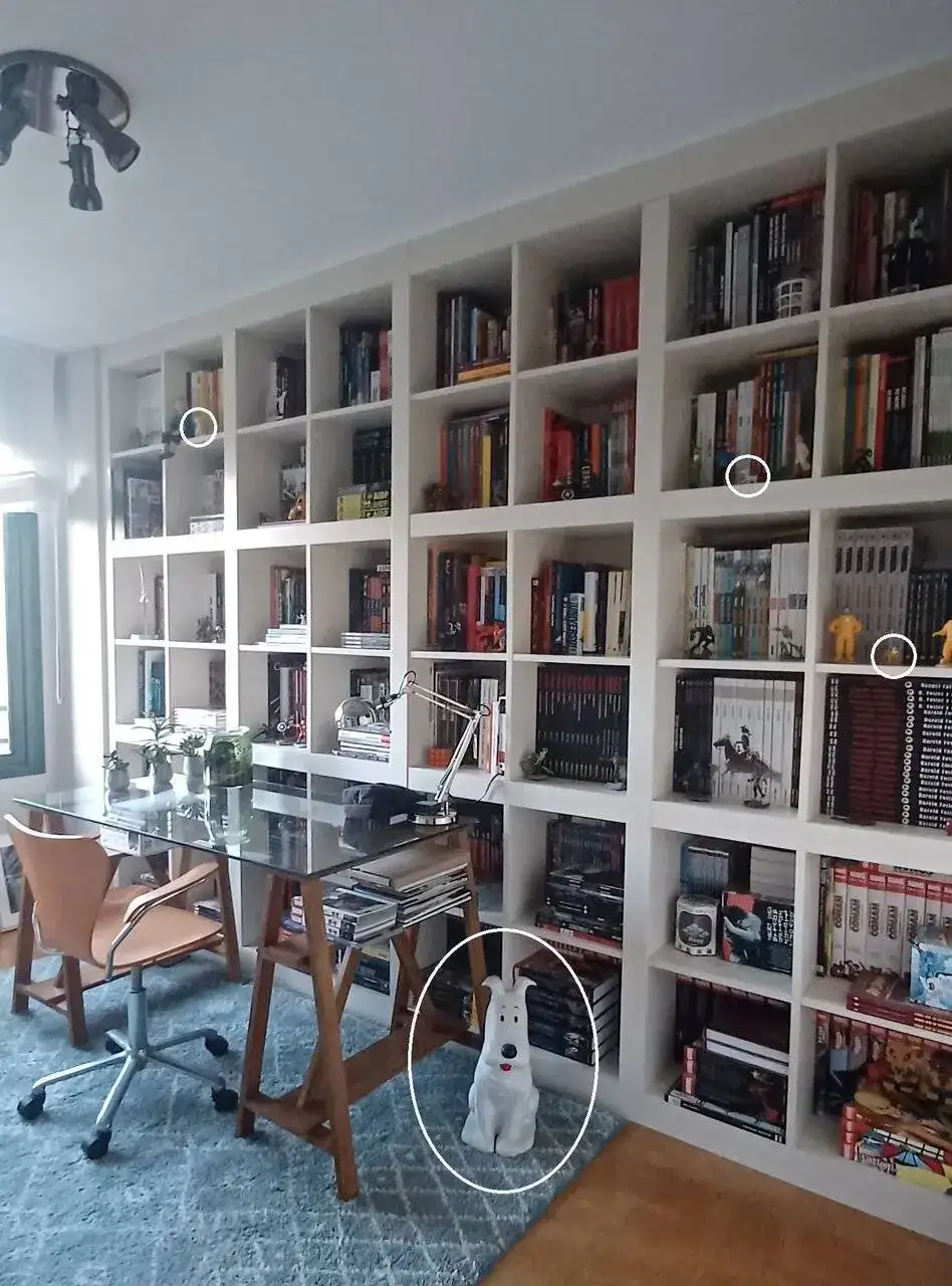 en esa foto hay 4 milús 😂😂😂Menuda biblioteca tienes, compi!. Me encanta ese Milú jajaja