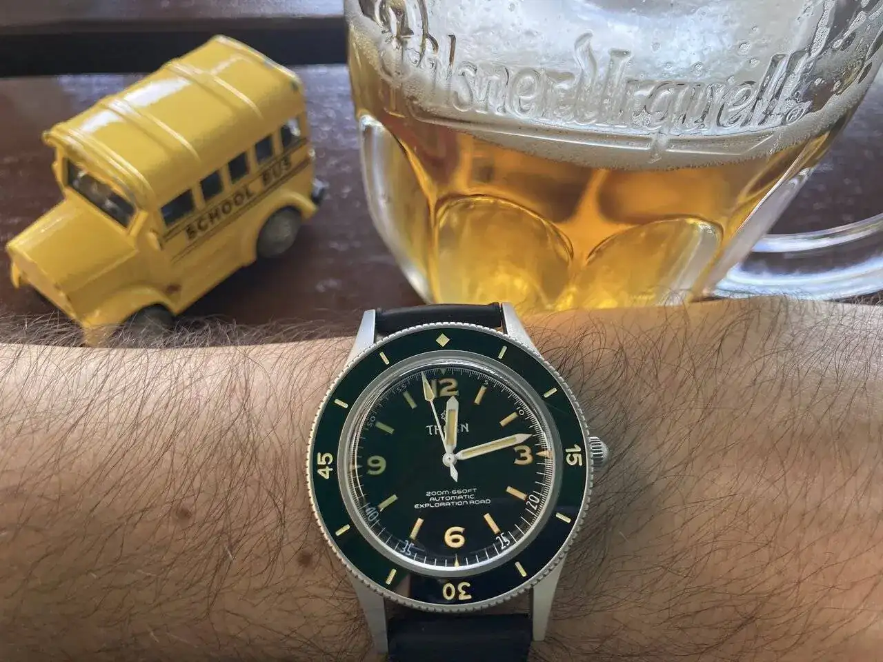 Me alegra que te guste. Es chino, un Thorn: https://www.thornwatches.com/products/thorn-vintage-50-fathoms-diveautomatic-mechanical-watchPrecioso!! me puedes decir que reloj es? justo las agujas borran la marca y no tengo como buscarlo!! me encanta ese toque al fifty de blancpain.