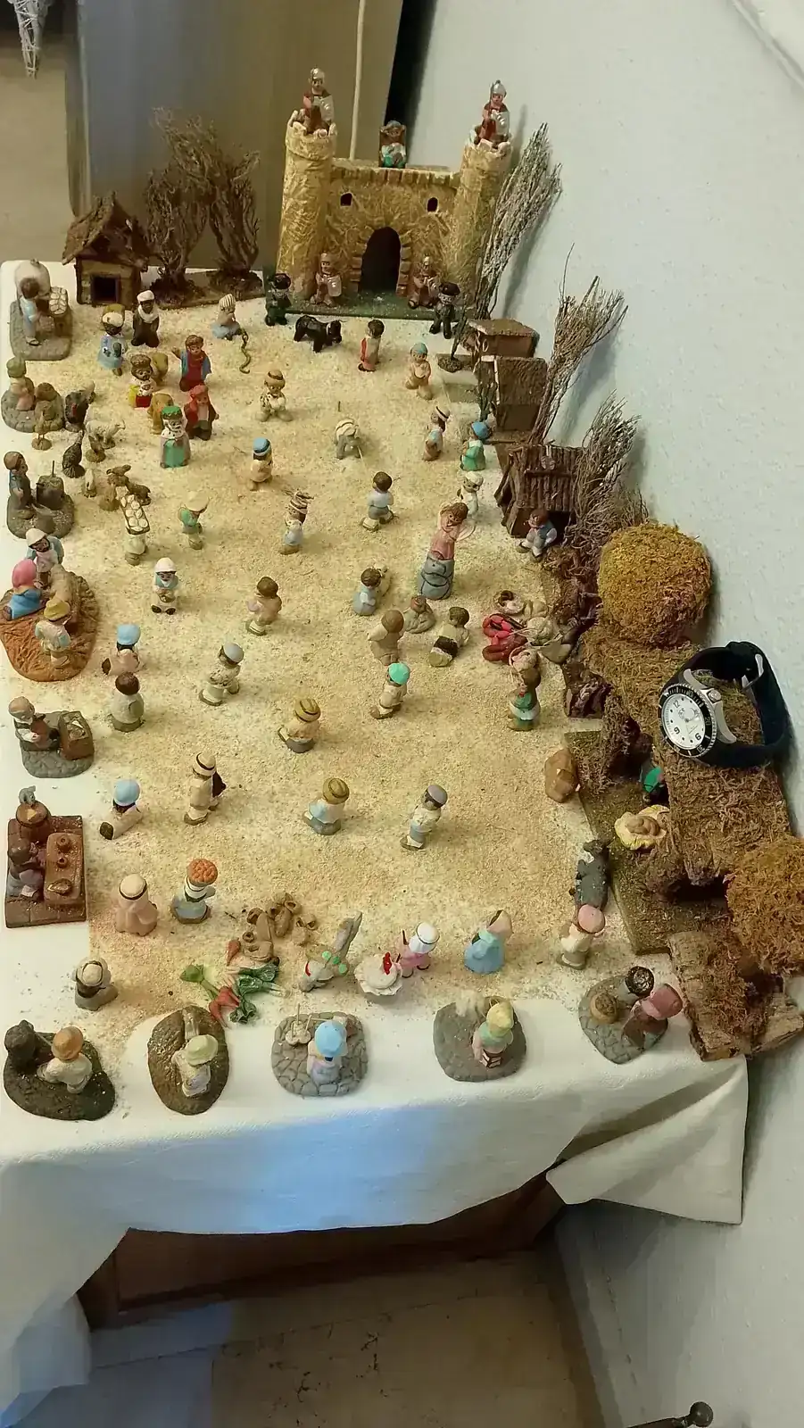 Que figuras mas divertidas!!Cuando mis hijos eran pequeños, montábamos el belén en el salón, en una mesa de ping pong, e incluso a veces, había que añadirle alguna mesa más. Montañas, ríos con corriente, huertos, luces, etc. Ahora nos conformamos con este recordatorio. Eso sí, alguna que otra figura "fuera de contexto", nunca falla.