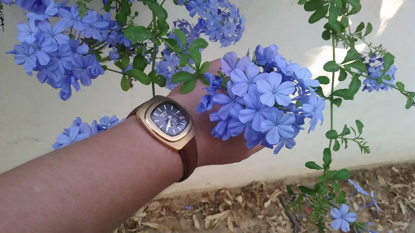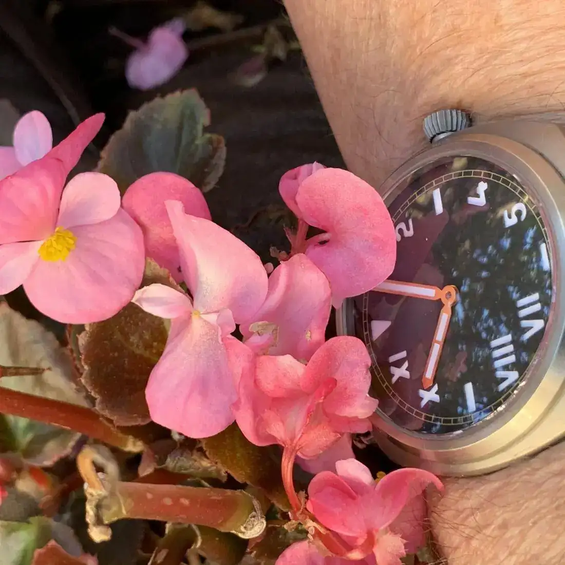Preciosa la foto con esa maravilla de reloj y las flores.