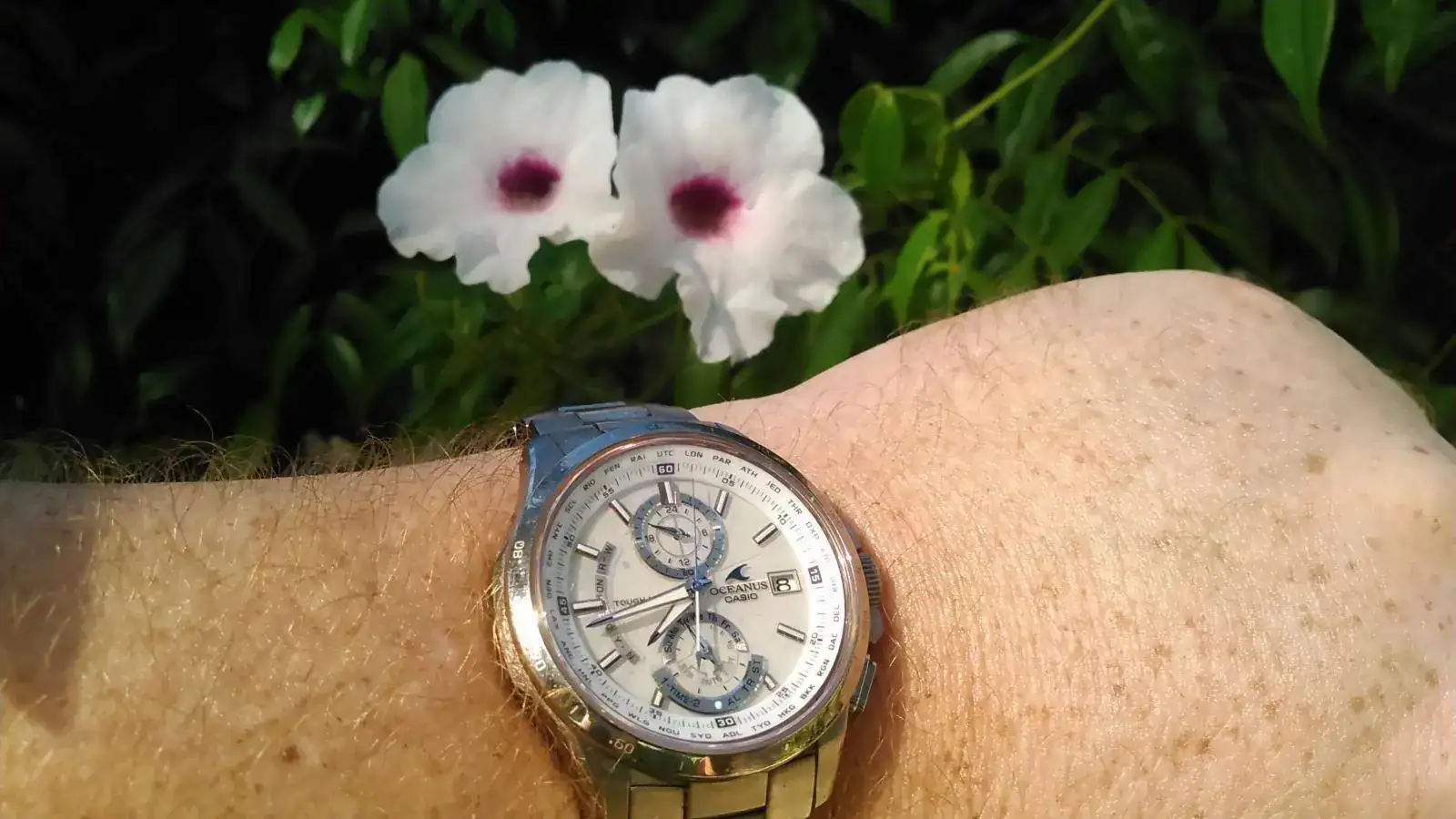 Preciosa la foto con esa maravilla de reloj y las flores.Rosa, te refieres a esta foto? fue estando de vacaciones y en un paraje silvestre.