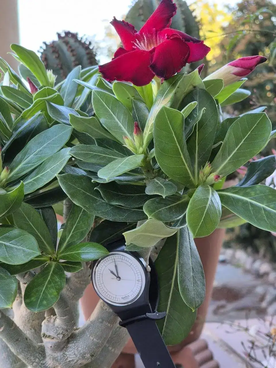 Se trata de un Adenium Obesum (Rosa del Desierto), de la familia de las Apocynaceae. (Gracias Google)