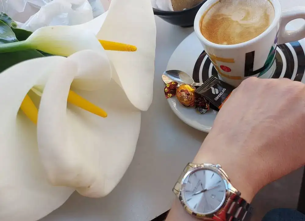 Preciosa foto, las calas maravillosas y el cafetito con bombón apetecible
