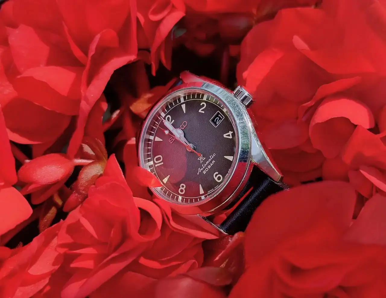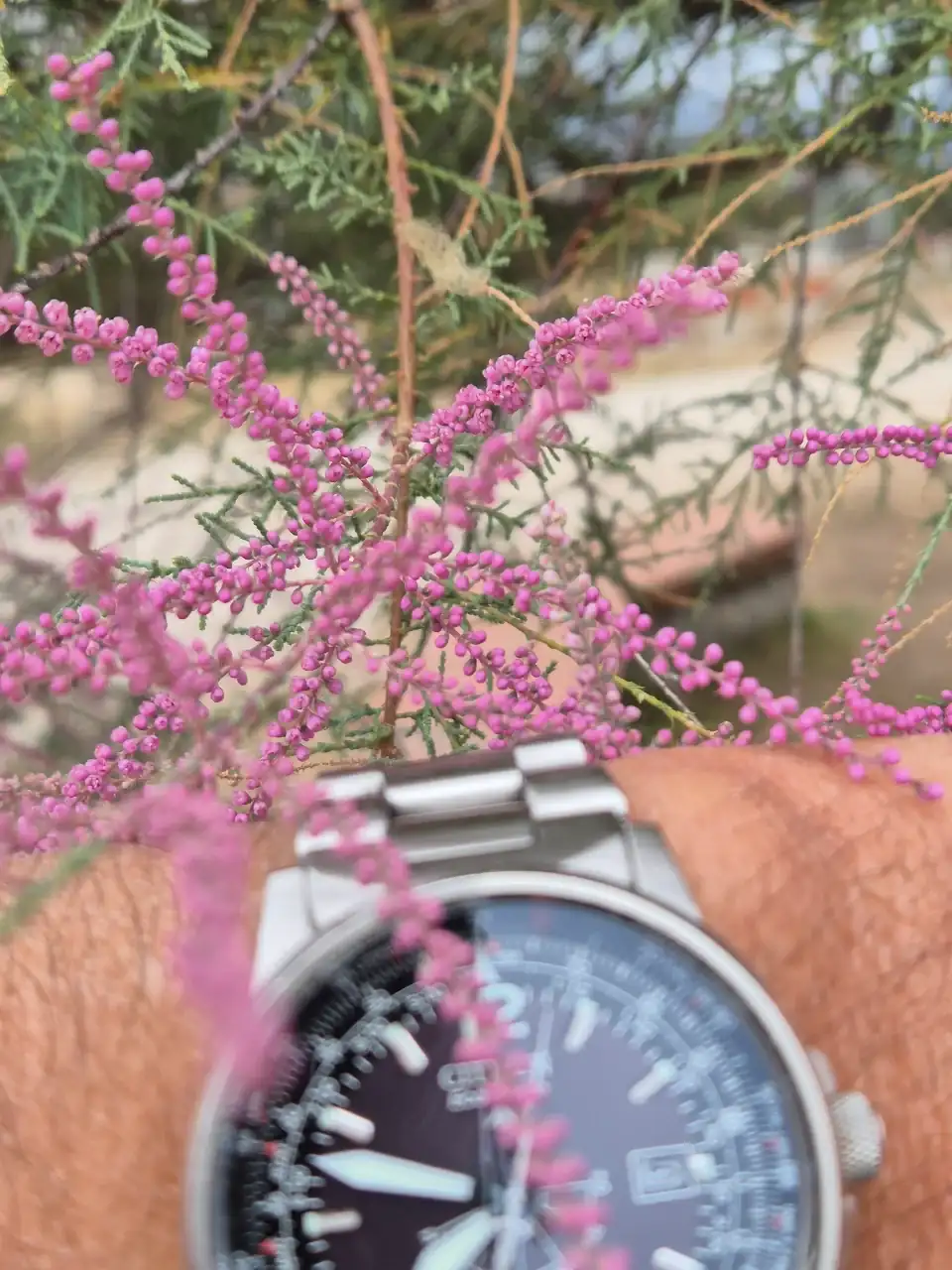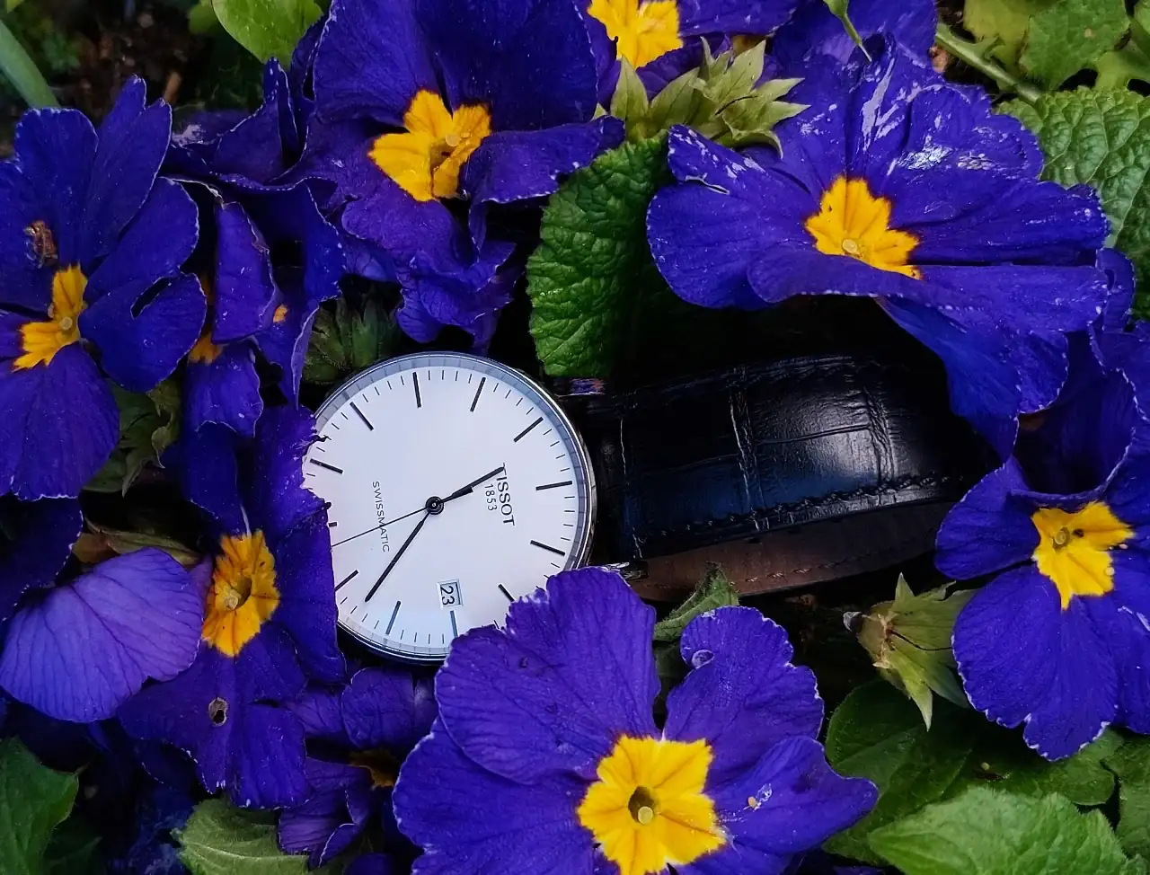 Qué bonitas flores, foto, composición y reloj