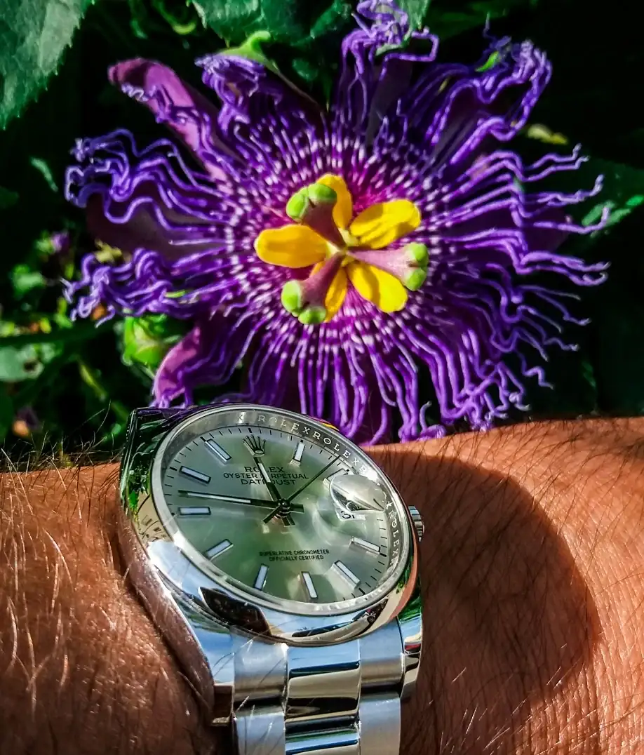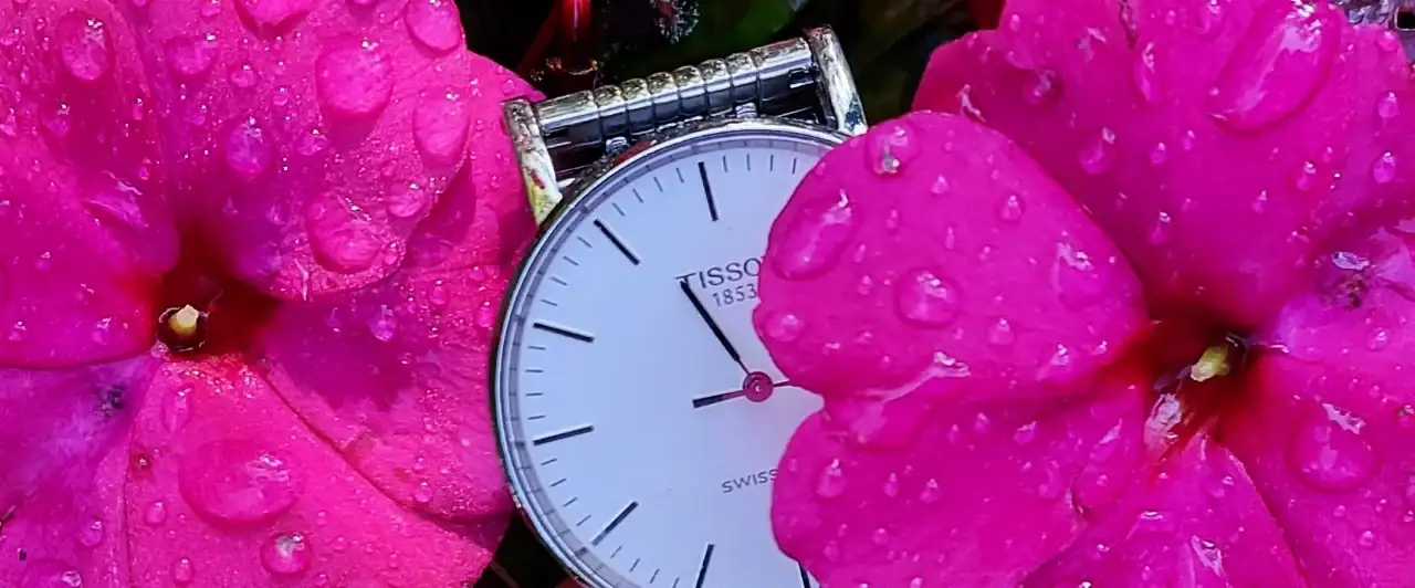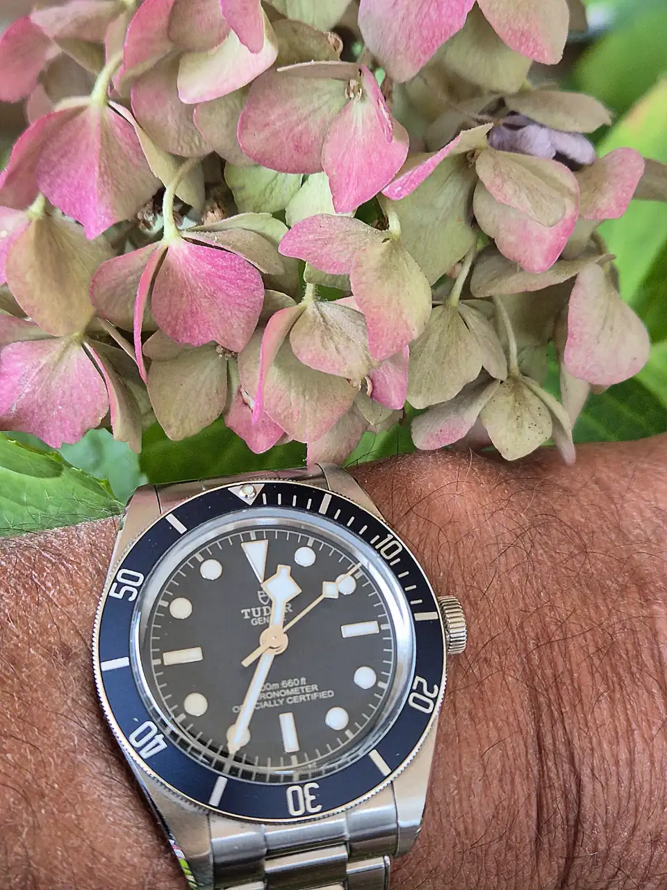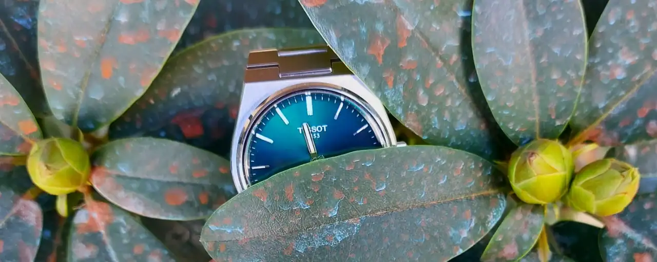 Precioso el Tissot entre esos capullitos de Rododendro enfermo