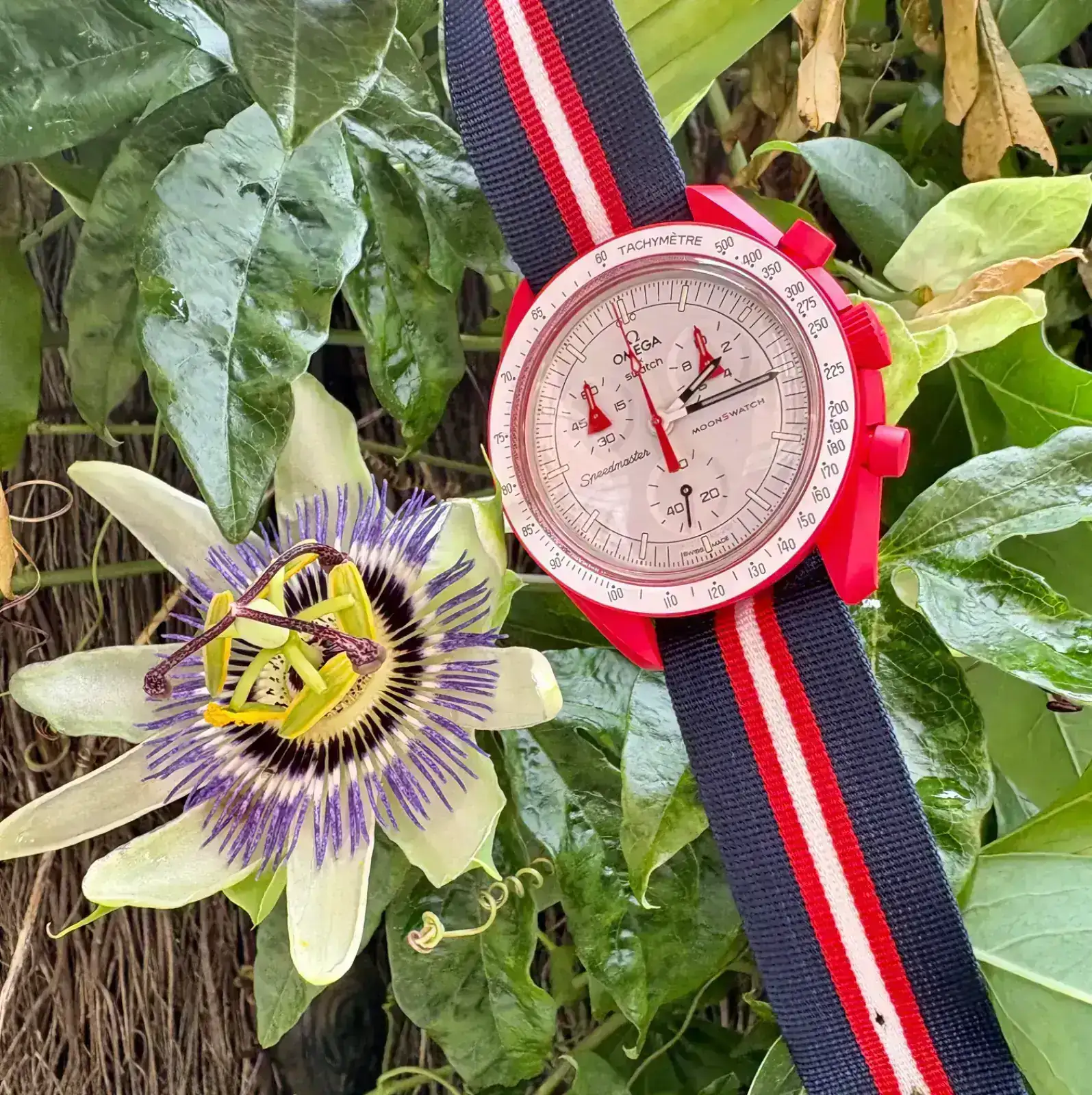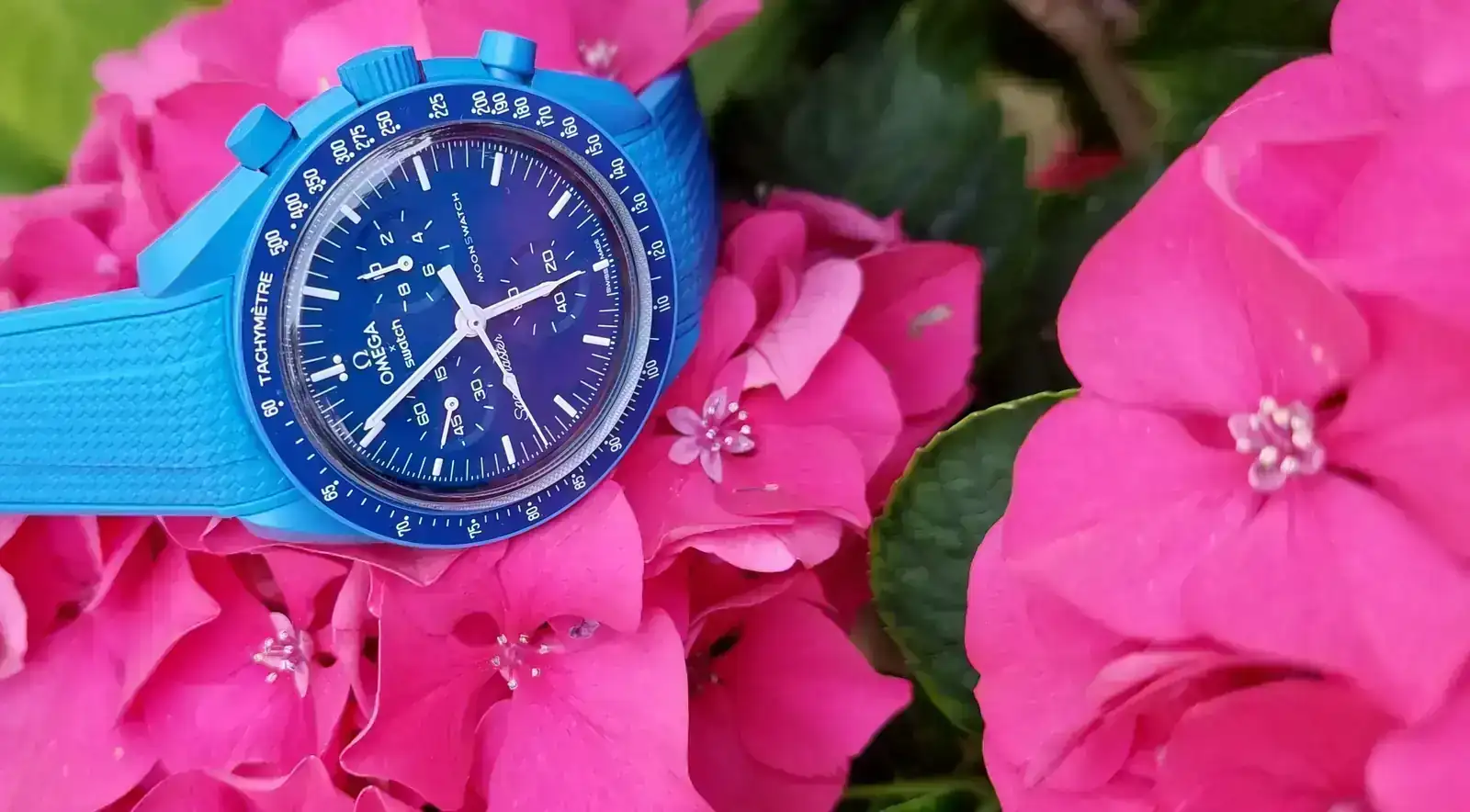 Preciosas esas hortensias y qué chulo llevas ese MoonswatchY al igual que tú, que no puedes dejar pasar una de esas passifloras, cuando veo una por aquí me voy a buscar otra para retratarla