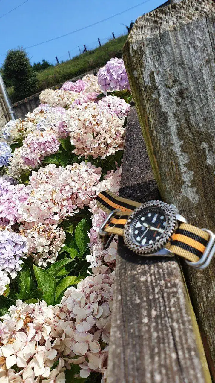Aquí mi seiko con unas estupendas flores que no sé cuáles son... Ver el archivos adjunto 2458953