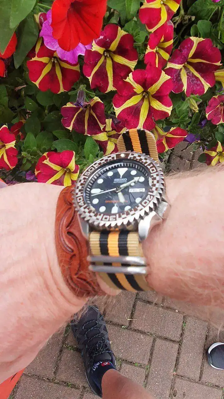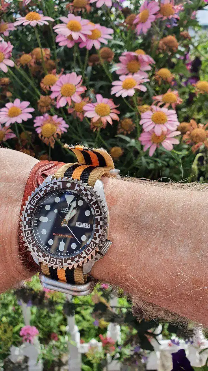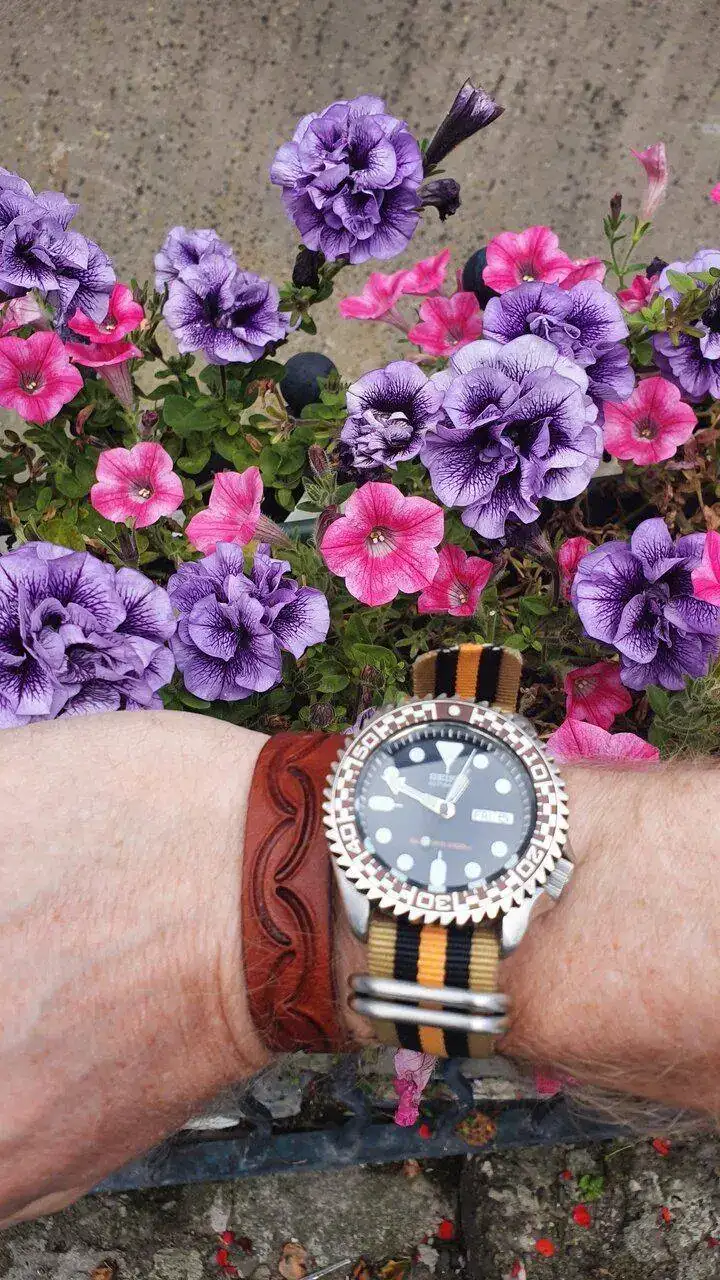 Son Fuchsias, también conocidas por pendientes de la reina.Hace un ratito hice esta foto, unas sencillas margaritas y un seiko.