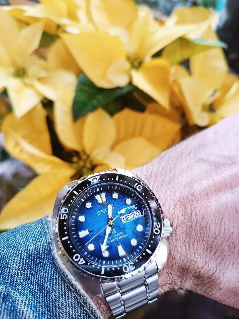 Preciosa la flor de Pascua y el Seiko fantásticoSin ser el reloj vintage, está con flores.