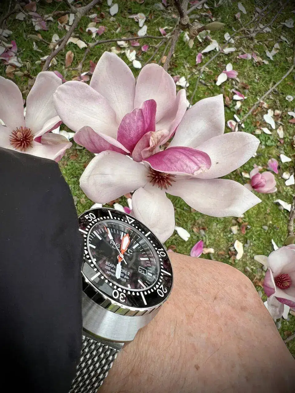 Muy bonita foto, no sé que flores sonEl Seiko tremendo.