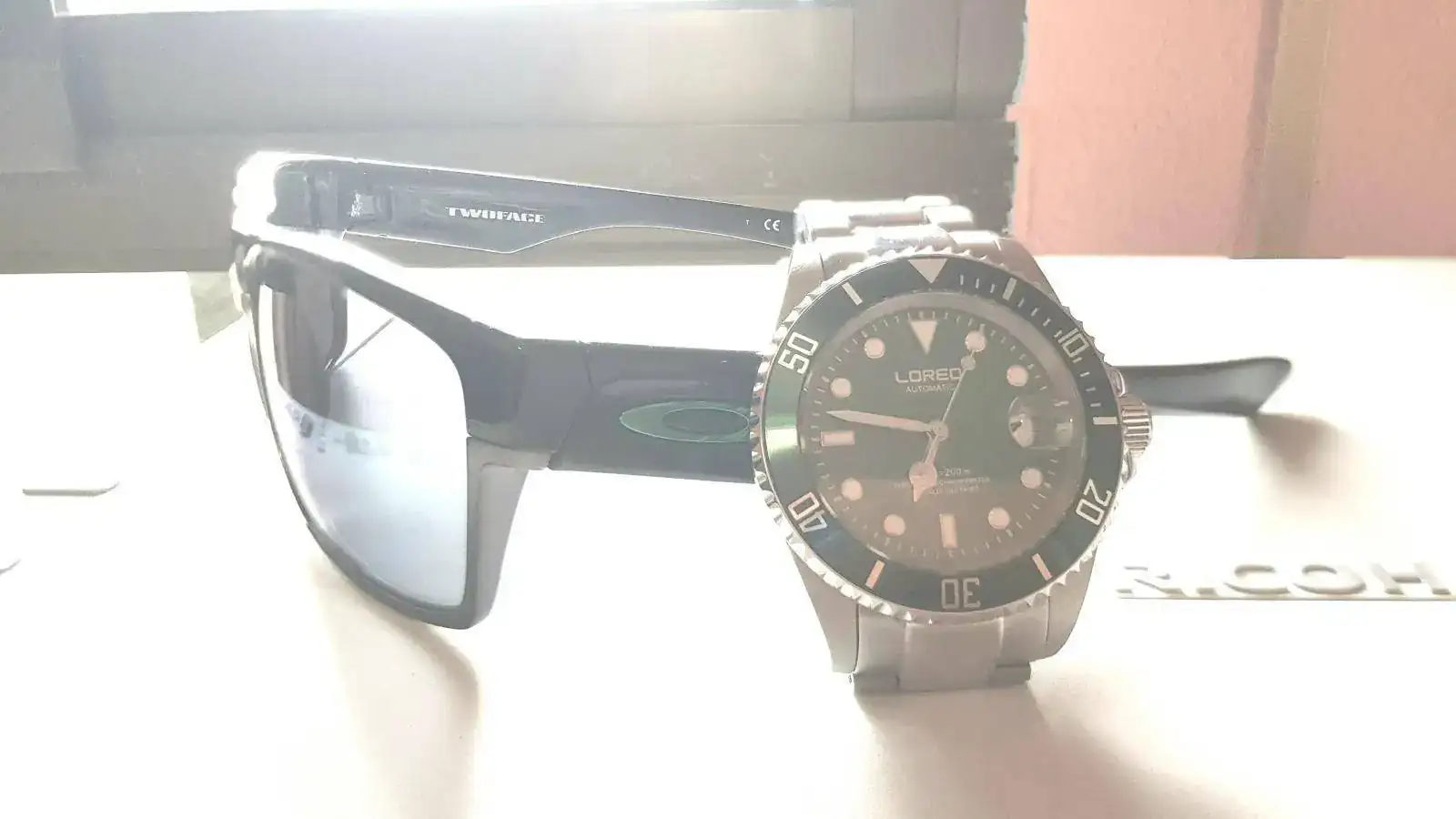 Mi conjunto para el verano: Oakley Twoface y Loreo "Submariner". Ambos de color verde. Aunque en las fotos que son de interior, no he conseguido que se vea la tonalidad de los cristales de las gafas. :(