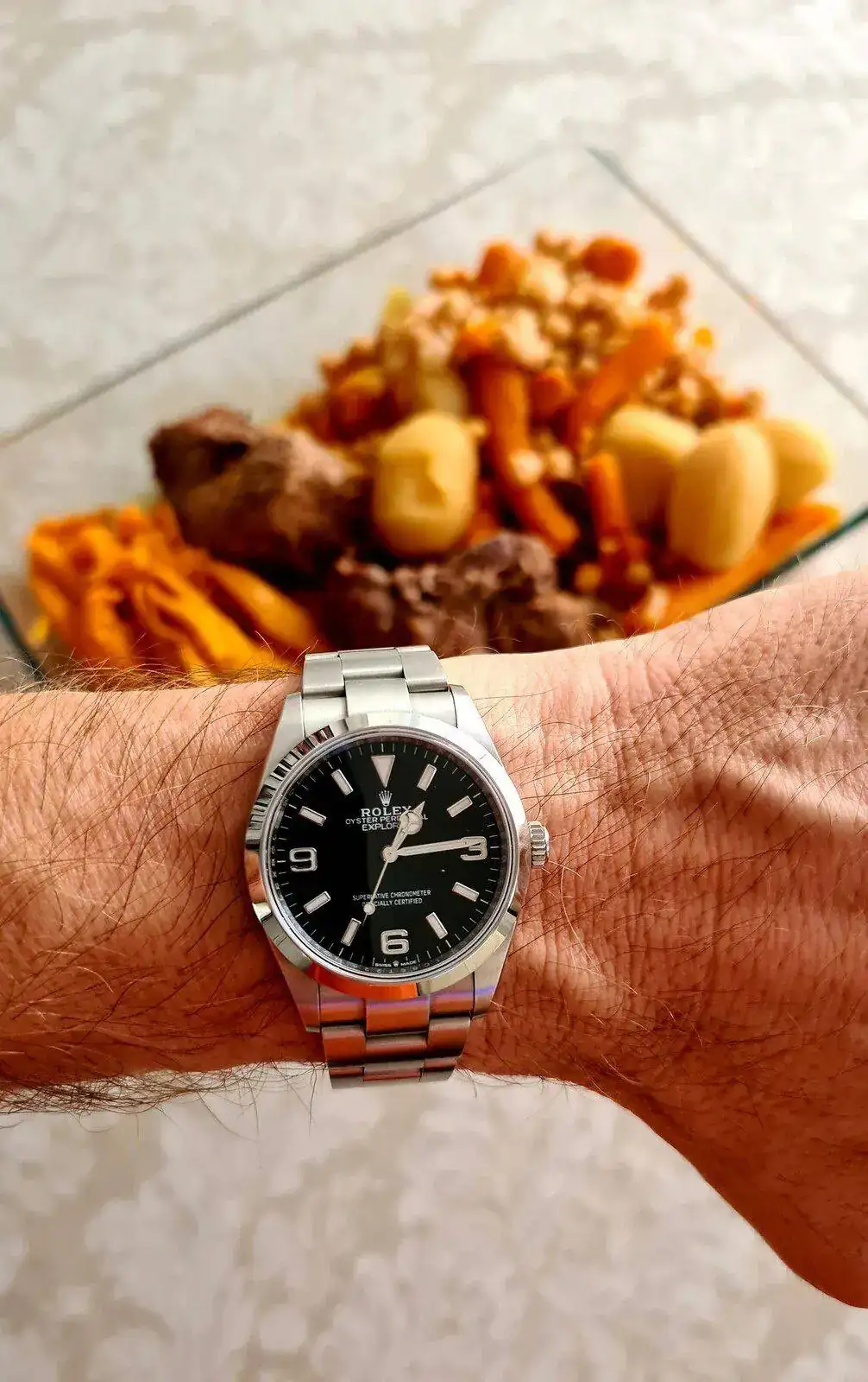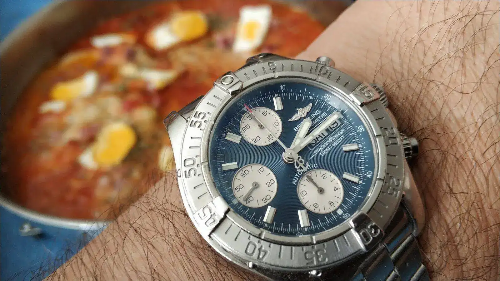 Aquí, con el bisel de mi Casio de 100 A.R. (Alubias Resistant) controlando los tiempos de nuestros domingueros frijoles a la habanera.