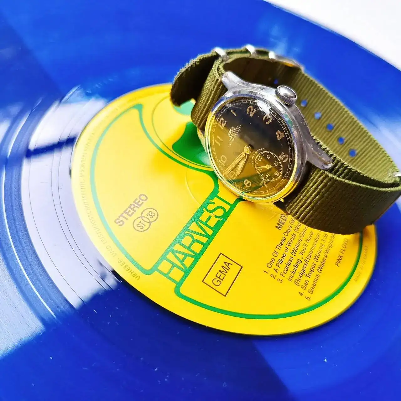 Me ha extrañado ver el vinilo de color azul, he mirado el mio y es negro, debieron hacer diversas ediciones.