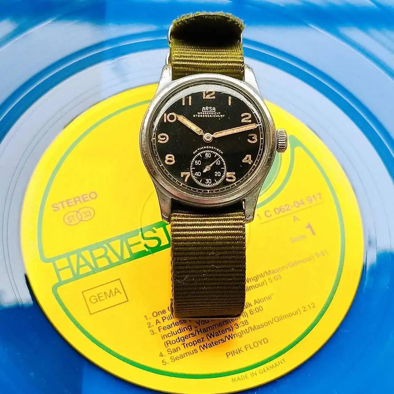 A mí también me llamó la atención sabiendo que el mío es negro, y fijándome en el de @xsagasta, he visto que está fabricado en West Germany, por lo que supongo que esa será la razón.Me ha extrañado ver el vinilo de color azul, he mirado el mio y es negro, debieron hacer diversas ediciones.