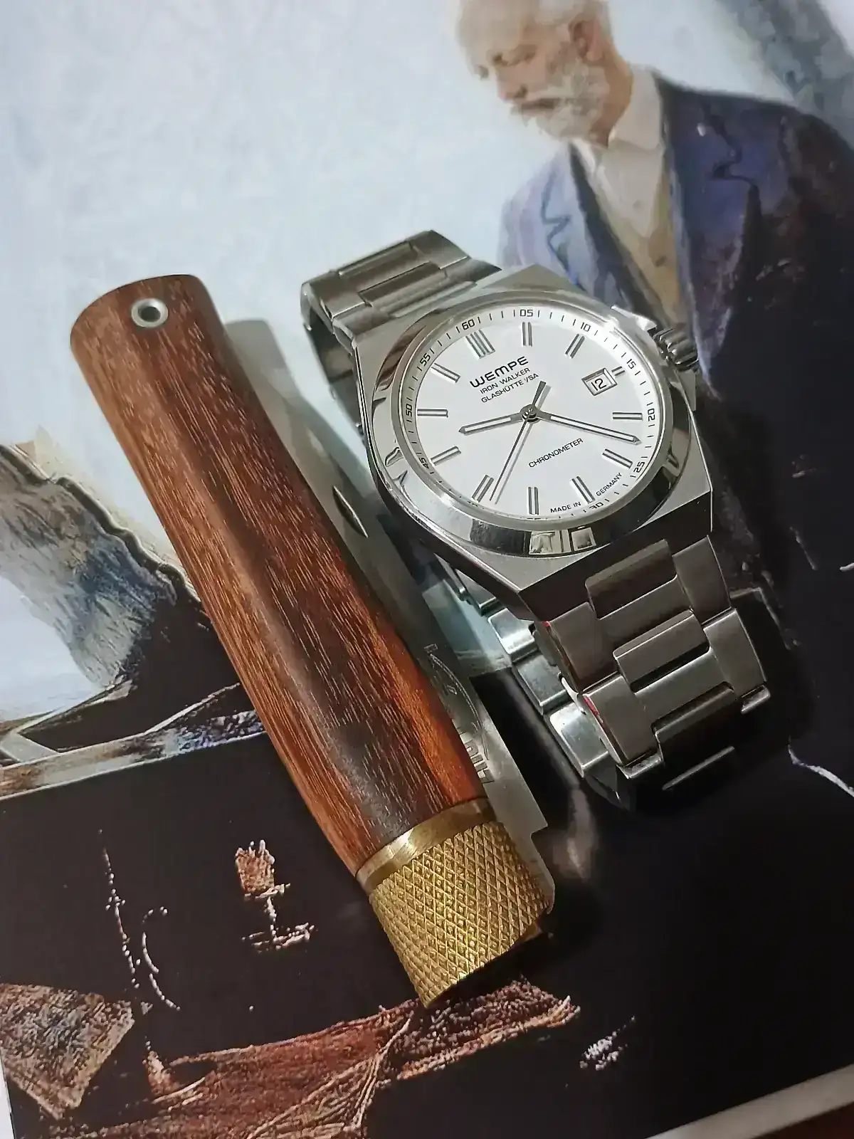 Hoy he tenido la tarde libre y he aprovechado para sacar unas fotos a esta sencilla Merendeira de José Da Cruz en madera de Muiracatiara junto al reloj que llevaba hoy