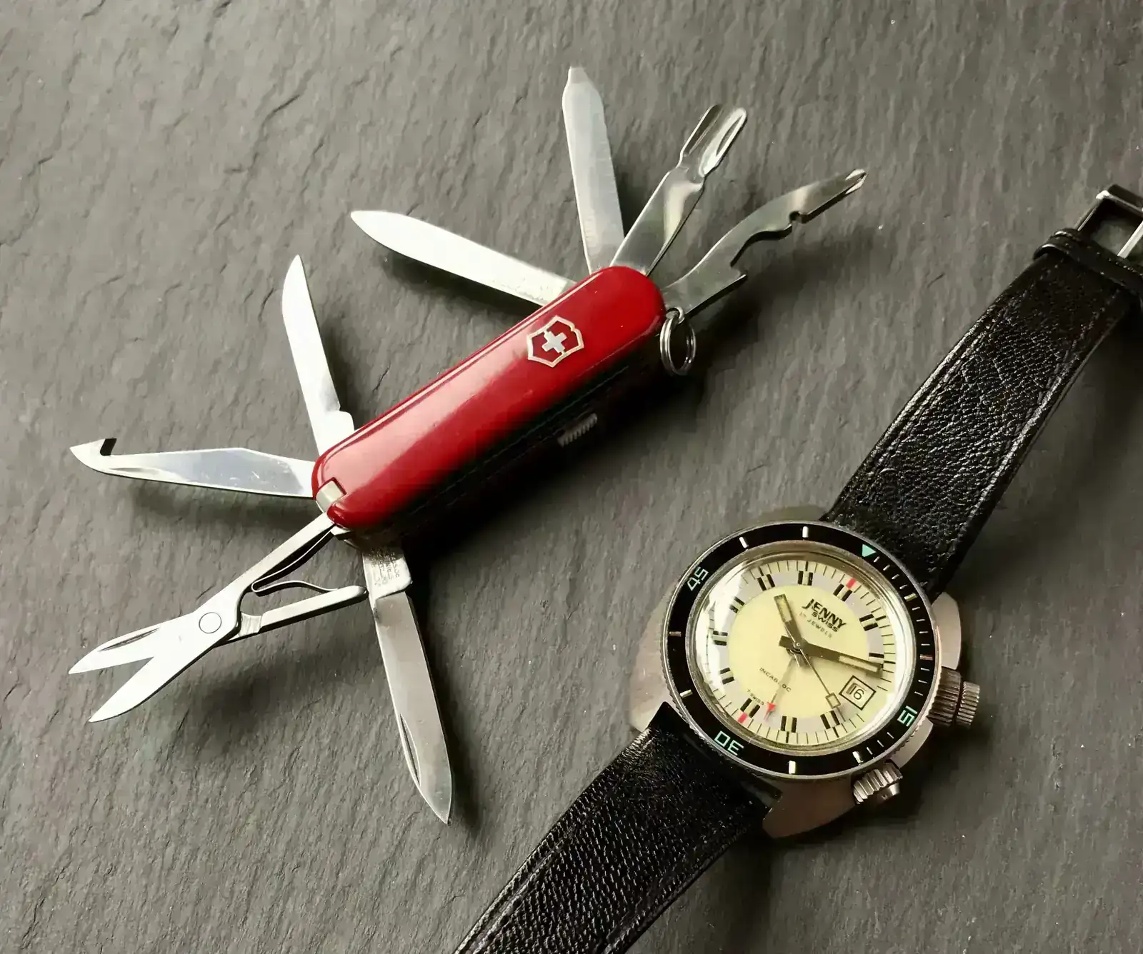 Abajo como debe quedar este modelo PST II fabricada entre 1996-97 (ver vídeo) . Sé que es la dos porque el cuchillo es dentado, lleva tijeras y lima diamantada (Foto ebay)
